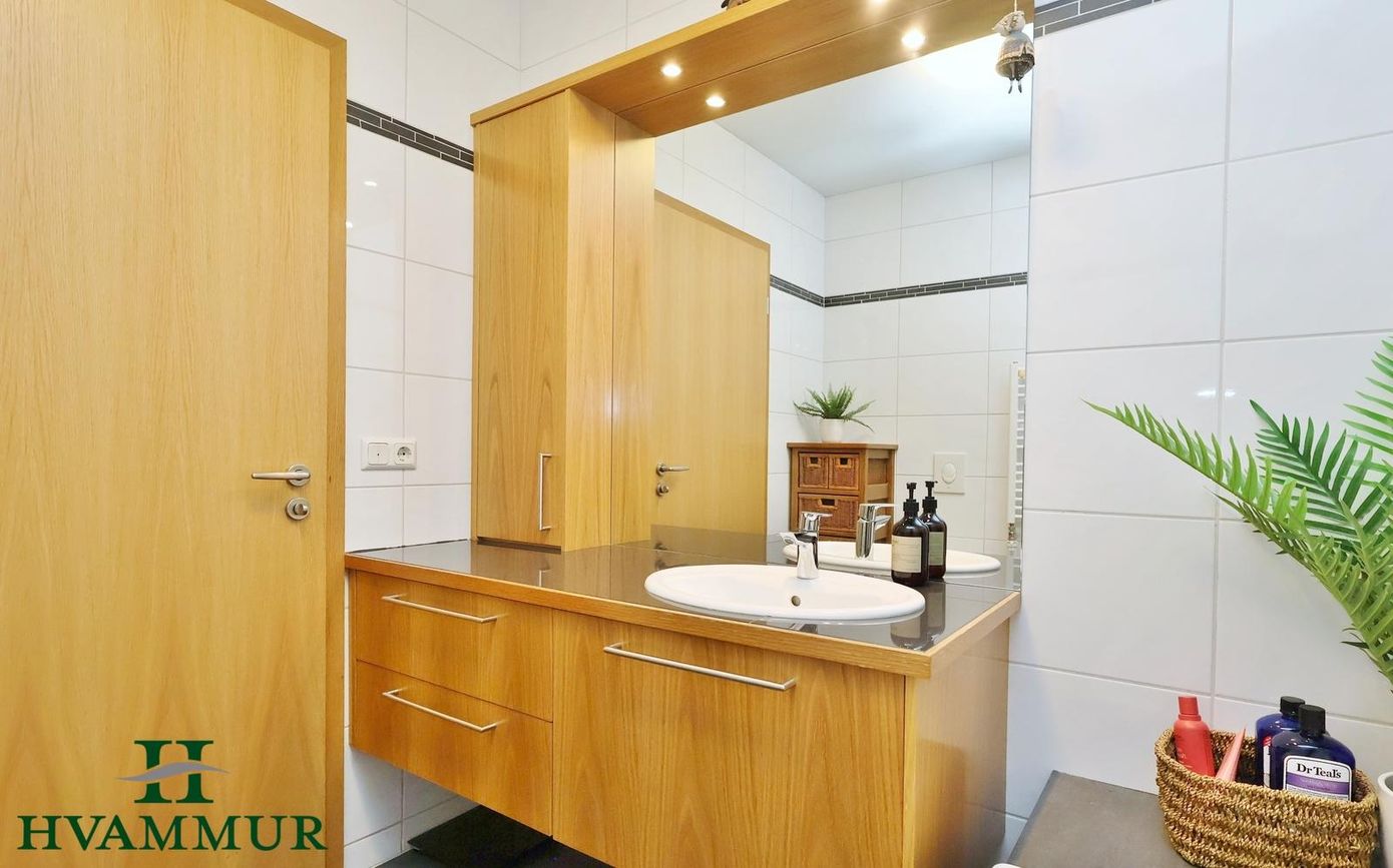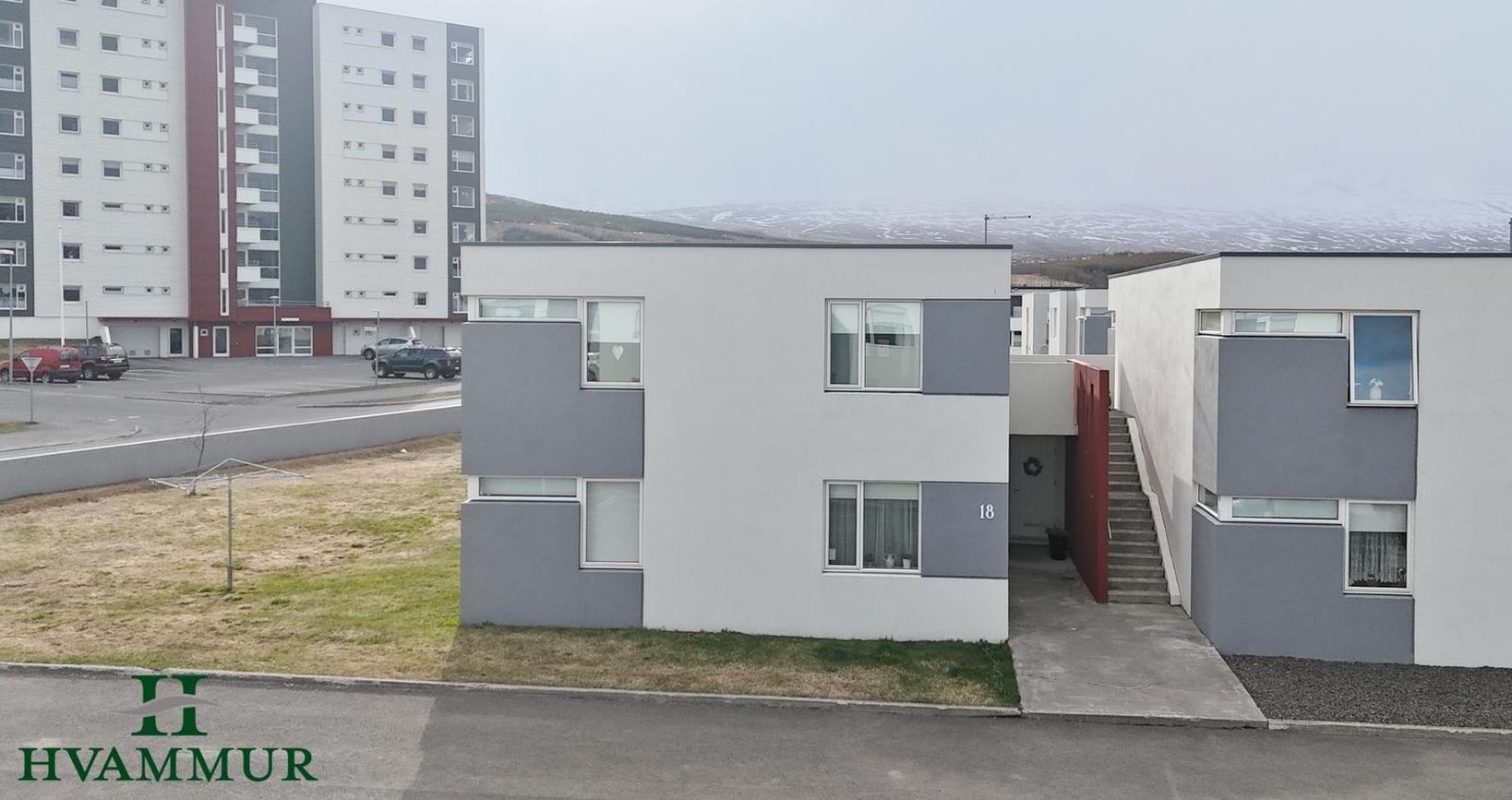 Hólatún 18 eh. – Björt og mjög vel nýtt 4ra herbergja endaíbúð á annarri hæð með sérinngangi – stærð 99,0 m²Eignin skiptist í forstofu, stofu og eldhús í opnu rými, þrjú svefnherbergi, baðherbergi, þvottahús, geymslu og geymslu í sameign.