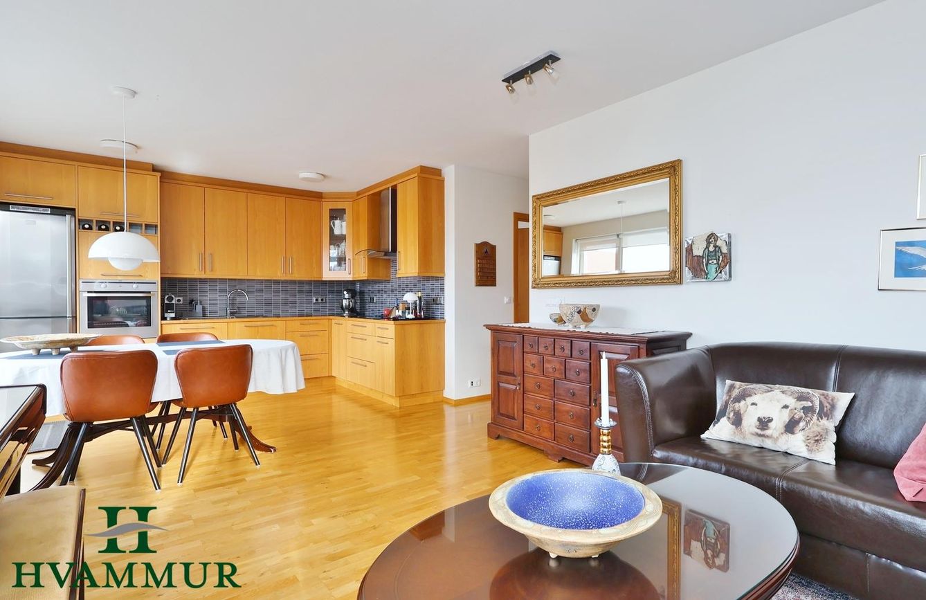 - Frábært útsýni er úr íbúðinni með gluggum til allra átta