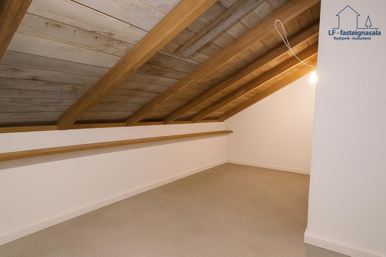 Í viðbót er lítið ævintýraloft sem væri brilljant leiksvæði fyrir börn, eða kósíhorn fyrir allan aldur eða bara geymslurými.