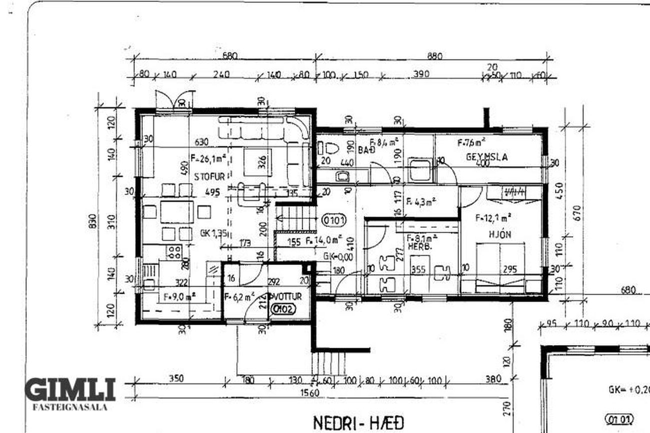 Tvíbýli á tveimur pöllum. Neðri pallur með forstofu, 3 svefnherbergjum, baðherbergi og geymslu (ekki alls staðar full lofthæð). Efri pallur með opnu eldhúsi og stofu/borðstofu sem tengist verönd og garði. Sameiginlegt þvottahús á efri palli. Sérinngangur að neðri hæð.