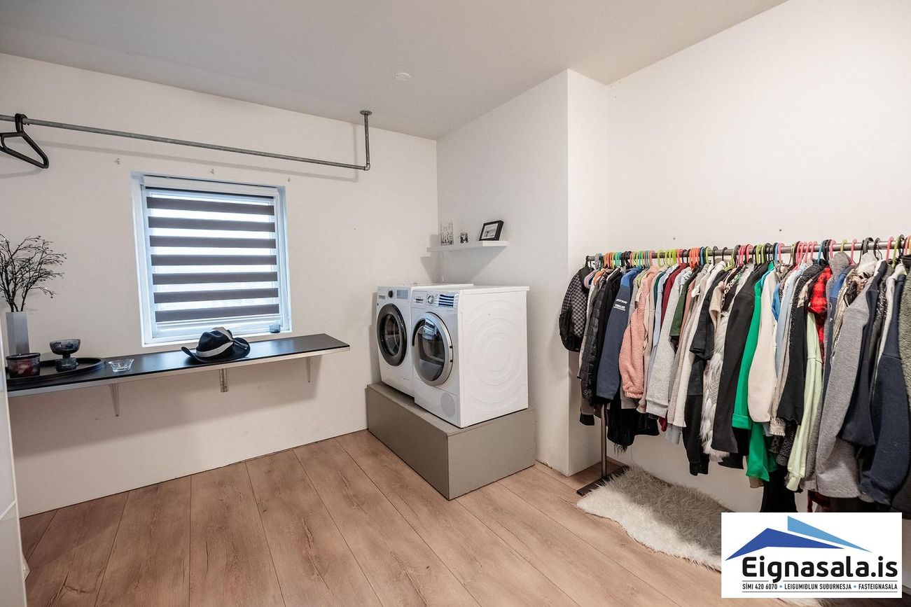 Þvottahús innan forstofu.