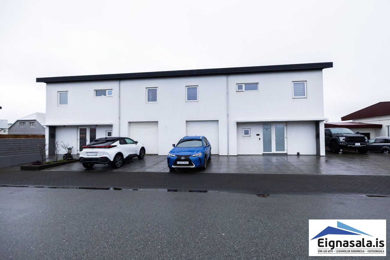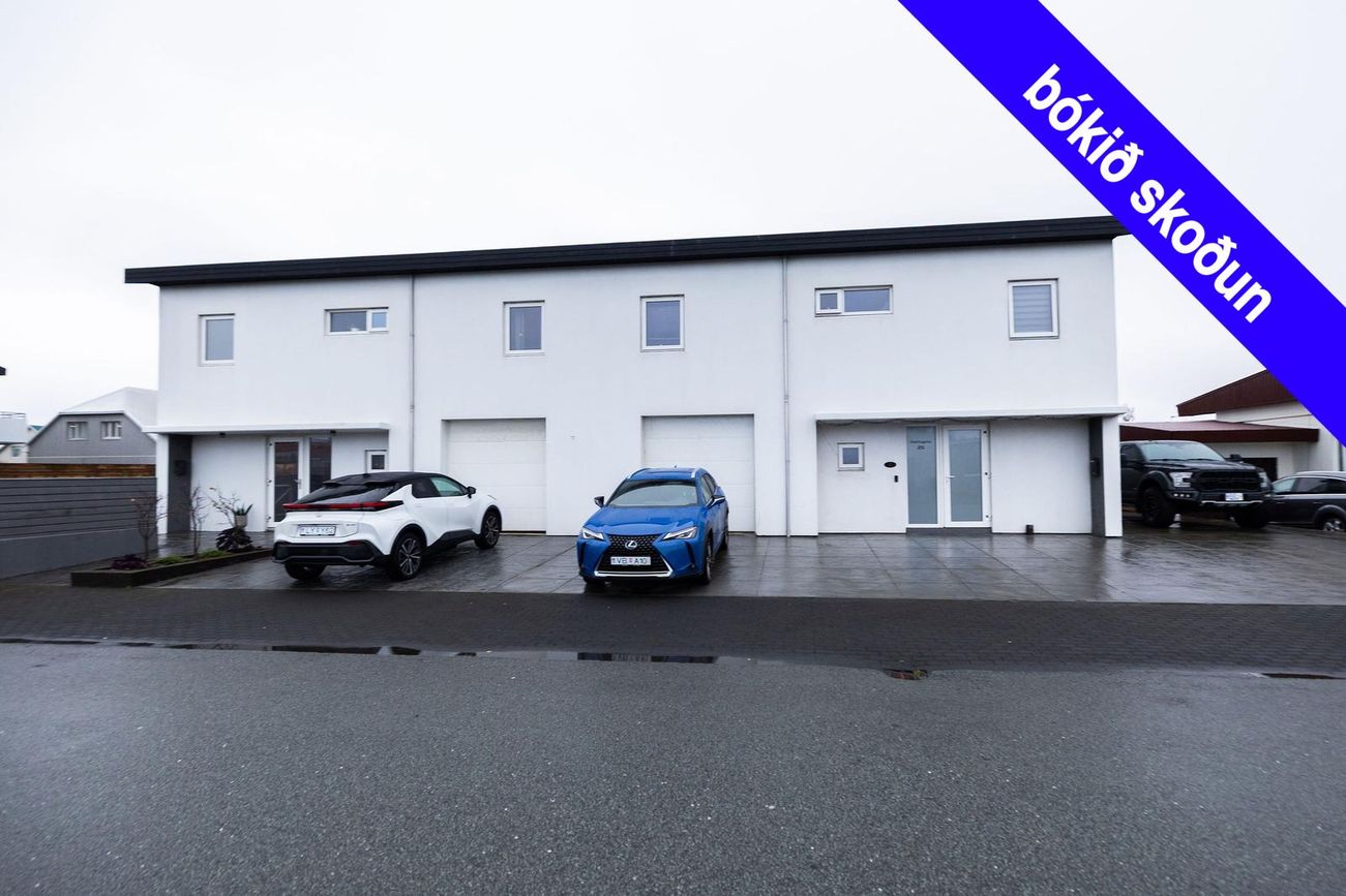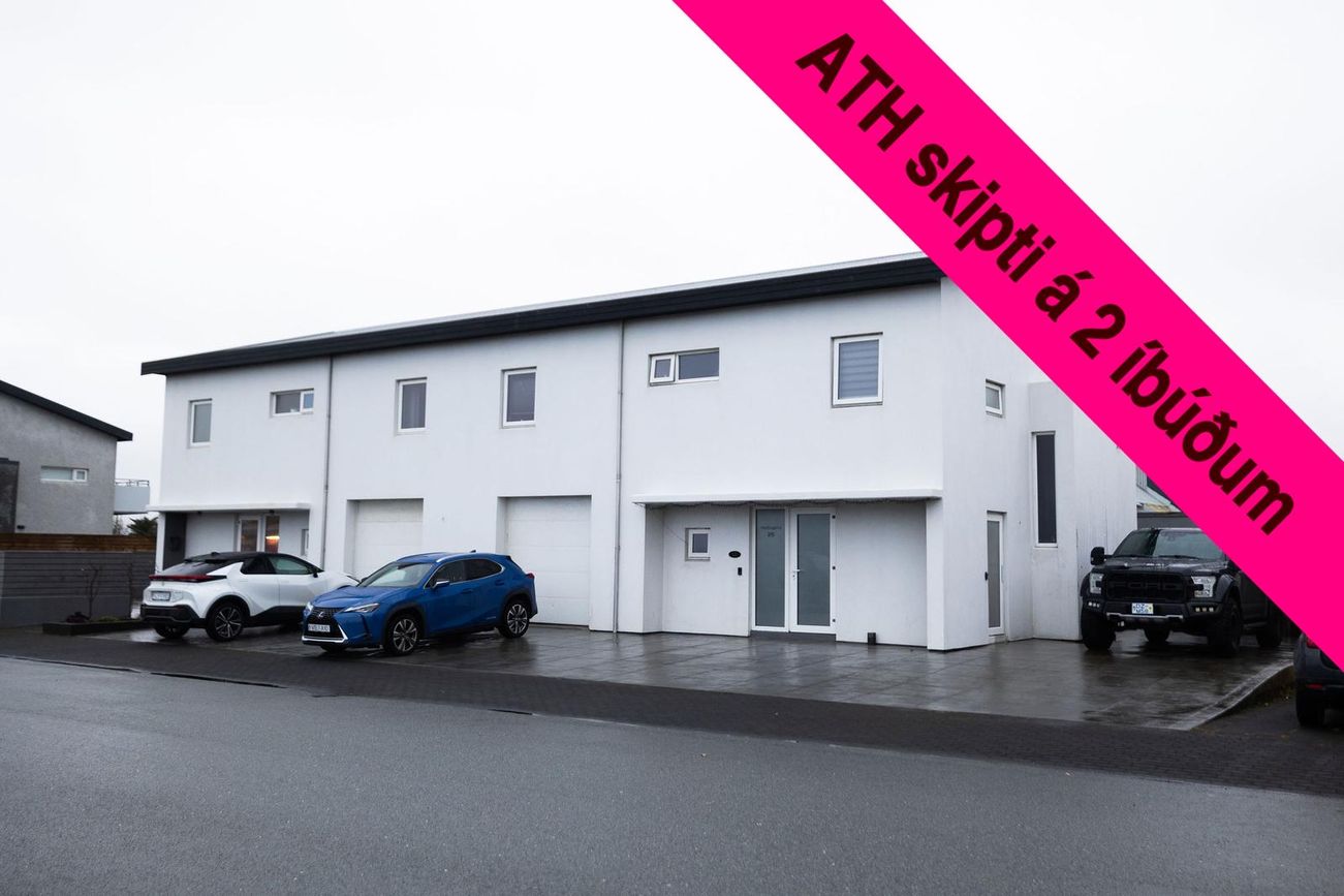 Parhús á tveimur hæðum, 217,1 fm (189,3 fm íbúð + 27,8 fm bílskúr). Möguleiki á skiptum á ódýrari eign.