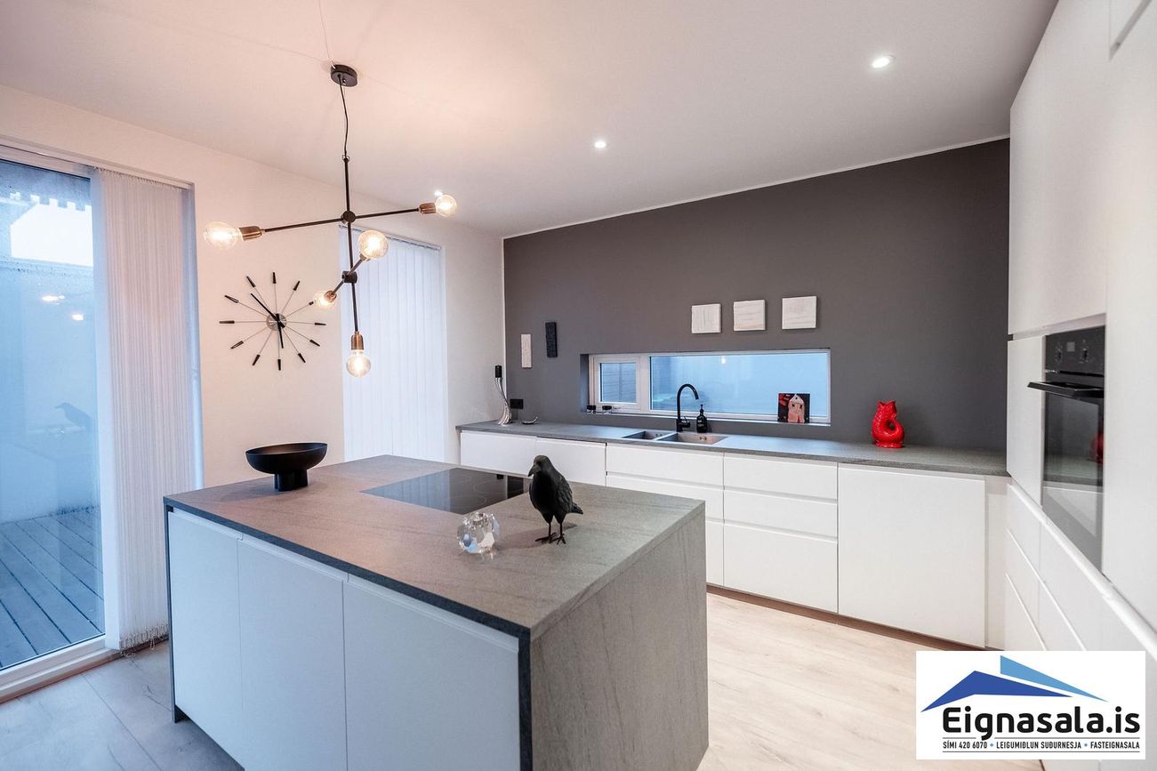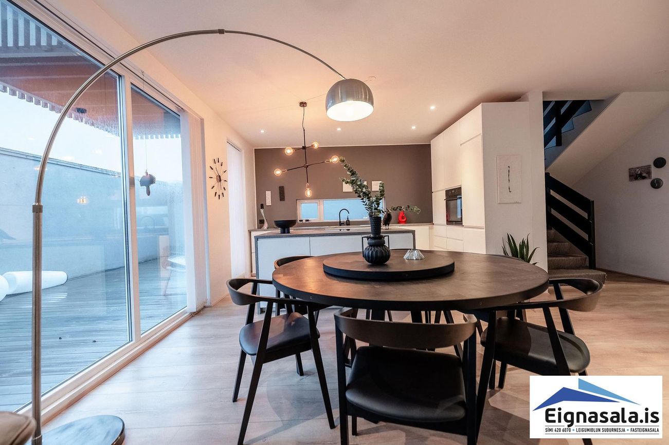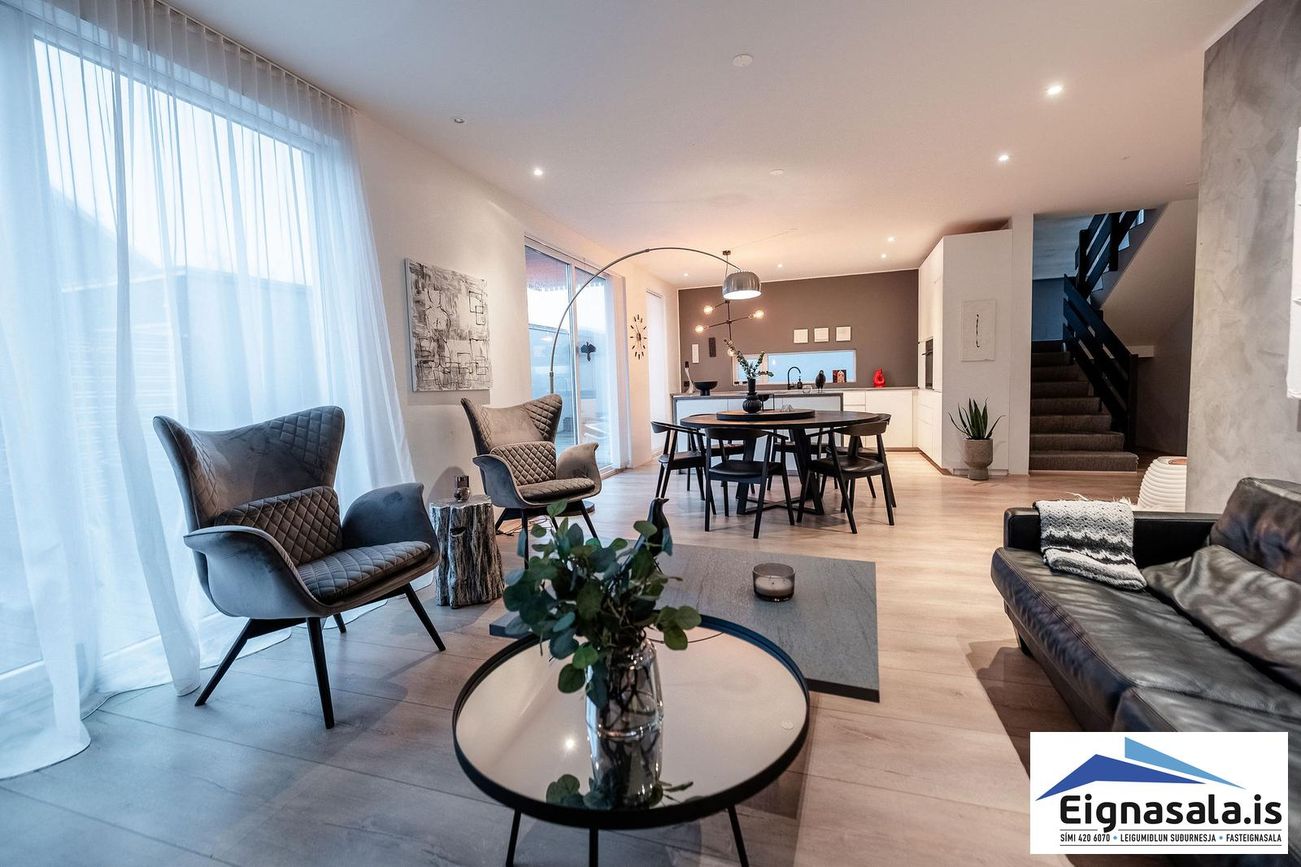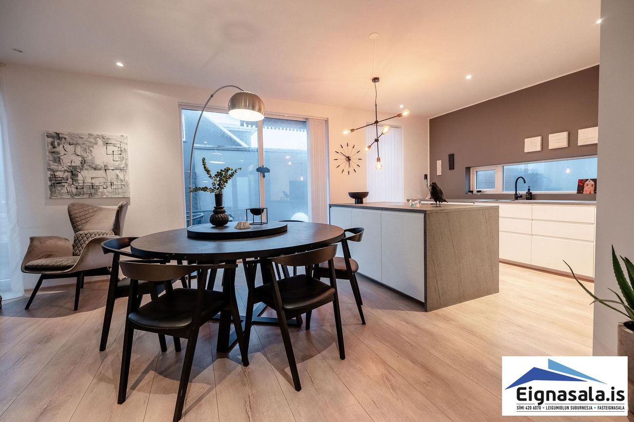 Parhús á tveimur hæðum, 217,1 fm (189,3 fm íbúð + 27,8 fm bílskúr). Möguleiki á skiptum á ódýrari eign.