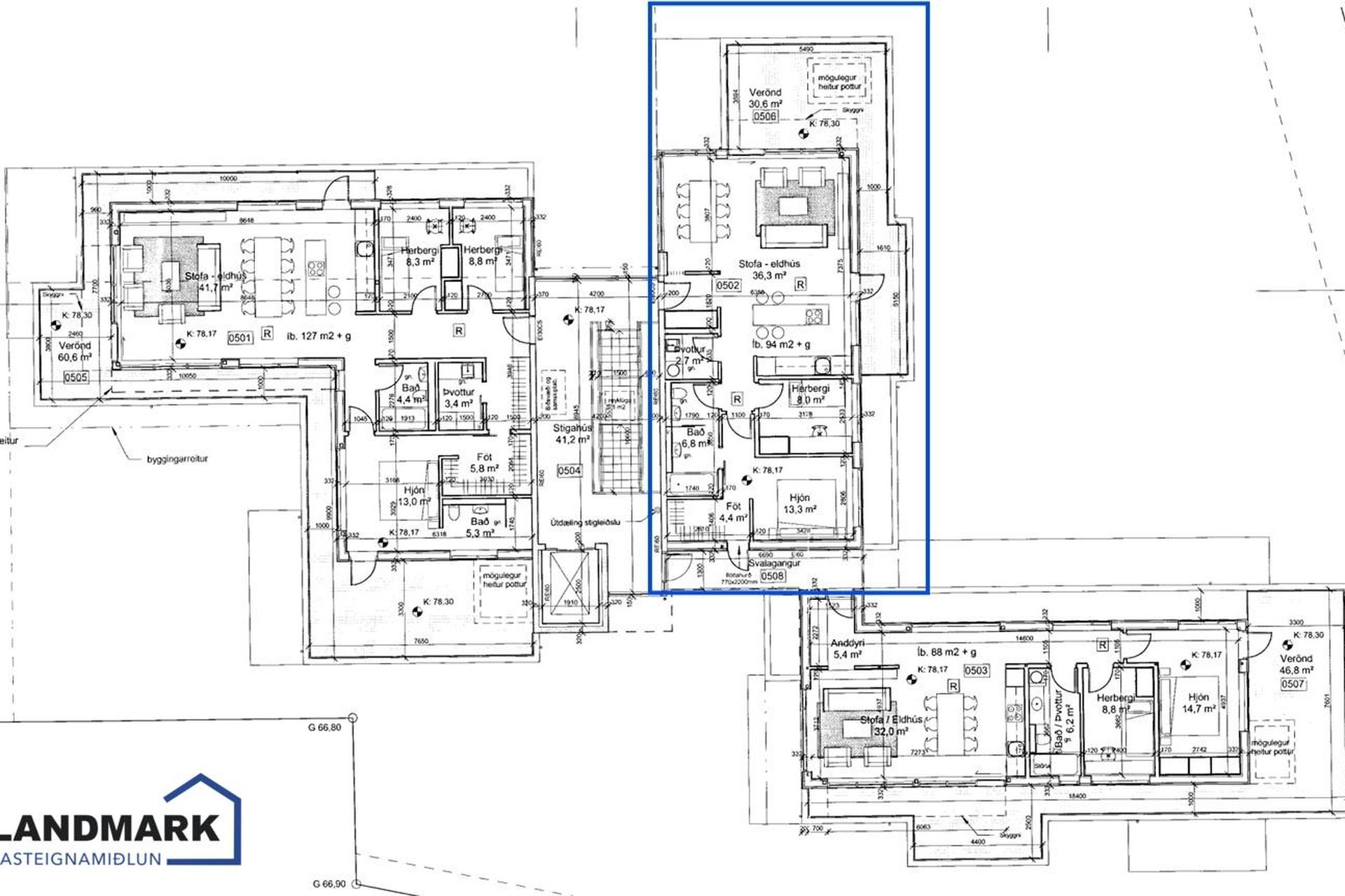 | 4 | 124,30 m² | 79.900.000 kr. 3. júlí 2023 | 77.000.000 kr. 25. ágúst 2023 |