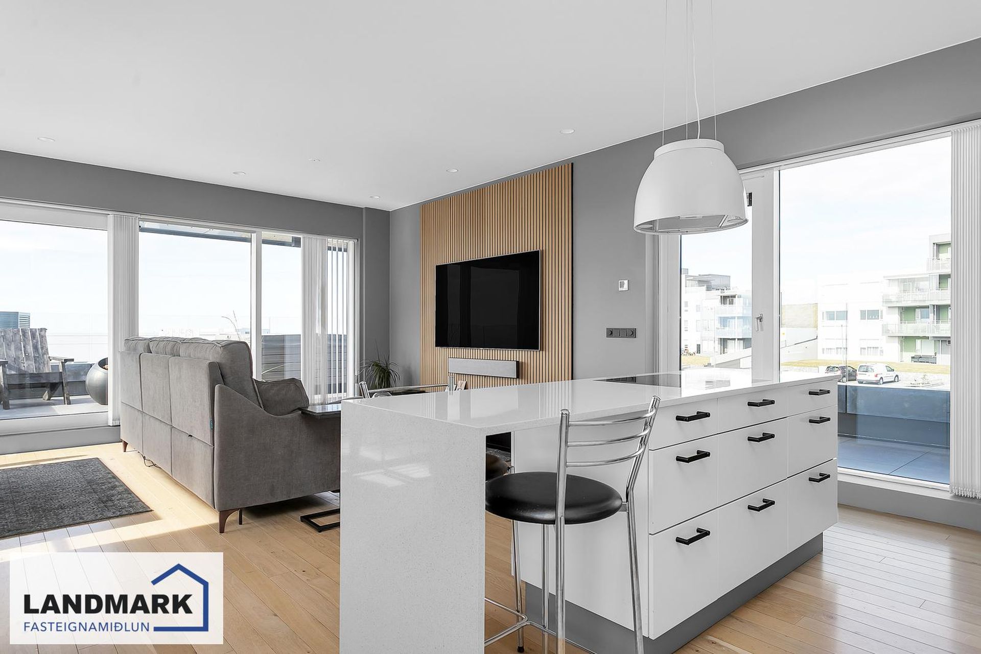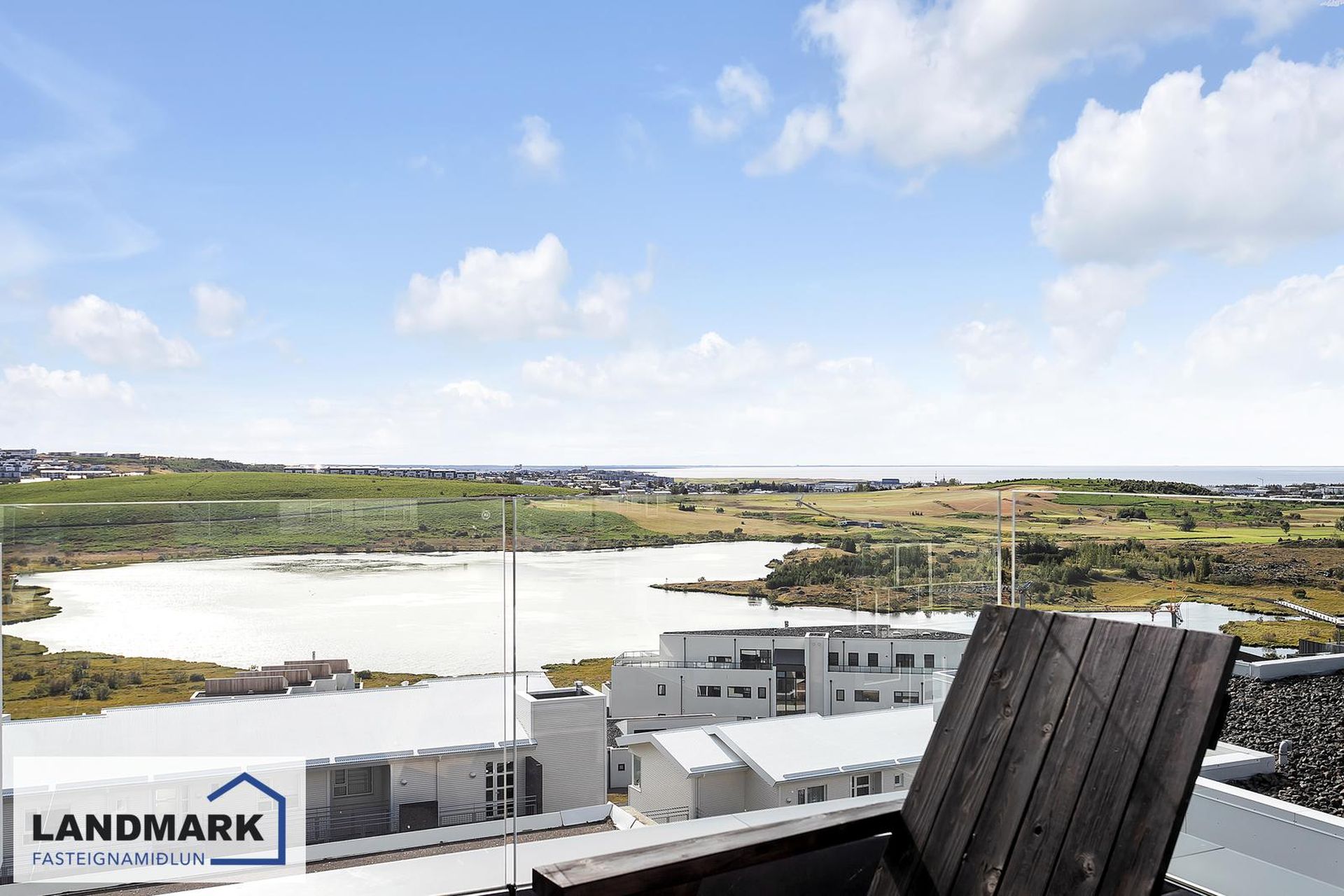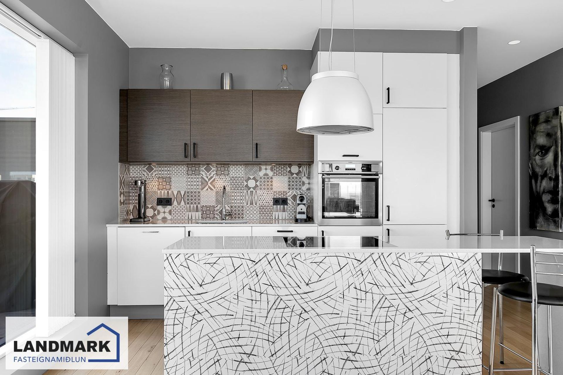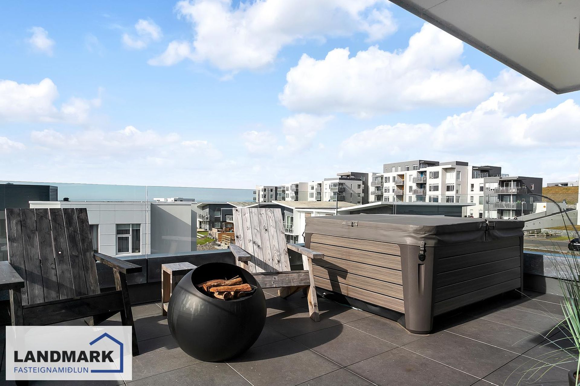 LANDMARK fasteignamiðlun og Þórey Ólafsdóttir löggiltur fasteignasali, kynna í einkasölu bjarta og fallega "Penthouse" íbúð í nýlegu lyftuhúsi við Holtsveg 37 í Urriðaholti með heitum potti á 30,7 fm þaksvölum, tvö sérmerkt bílastæði í kjallara og einn 16 ampera tengill til hleðslu.Birt stærð séreignar er 106,1 fm samkvæmt Þjóðskrá Íslands, þar af er geymsla 12,8 fm. Eigninni fylgja tvö merkt stæði í bílageymslu, merkt B21 og B22 sem og einnig 30,7 fm þaksvalir.Smelltu hér til að sækja söluyfirlit en annars veitir Þórey lgf. frekari upplýsingar í síma 663 2300 eða .Lýsing eignar:Forstofa með fataskáp.Stofa og borðstofa í björtu og opnu rými með eldhúsi, mikið útsýni yfir Urriðavatn, Reykjanes og Bessastaði, útgengt á flísalagðar þaksvalir með heitum rafmagnspotti.Eldhús er með hvítri innréttingu og dökkum efri skápum, eldhúseyja með helluborði, bakaraofn í vinnuhæð og steinn á borðplötum úr steini. Innbyggð tæki sem fylgja, kæliskápur og uppþvottavél, útgengt á stórar þaksvalir.Hjónaherbergi með góðu fataherbergi (var áður opið úr hjónaherbergi inn á baðherbergi en búið að loka).Barnaherbergi með fataskáp.Baðherbergi flísalagt með hvítri innréttingu, upphengdu salerni og walk-in sturtu.Þvottahús með innréttingu og skolvask, flísar á gólfi.Geymsla á 1. hæð (12,8 fm).Gólfefni íbúðar er gegnheilt eikarparket og flísar á baðherbergi og þvottahúsi, tölvustýrt gólfhitakerfi í allri íbúðinni, Philips HUE ljósastýring, innréttingar frá Axis og eldhústæki frá AEG. Eigninni fylgir hlutdeild í sameign, sameiginlegri hjóla- og vagnageymslu, sér geymsla á 1. hæð og tvö merkt stæði í bílakjallara.Frekari upplýsingar veitir Þórey Ólafsdóttir, löggiltur fasteignasali / B.Sc. í viðskiptafræði í síma 663 2300 eða Um skoðunar- og aðgæsluskyldu:Í lögum um fasteignakaup nr. 40/2002 er kveðið á um ríka skoðunarskyldu kaupenda á fasteignum. LANDMARK fasteignamiðlun bendir væntanlegum kaupendum á að kynna sér vel ástand fasteigna við skoðun og fyrir tilboðsgerð og ef þurfa þykir að leita til sérfræðinga um nánari ástandsskoðun.Forsendur söluyfirlits:Söluyfirlit er samið af fasteignasala í samræmi við ákvæði laga nr. 70/2015. Þær upplýsingar sem fram koma í söluyfirliti þessu eru sóttar í opinberar skrár, til seljanda sjálfs og eftir atvikum til húsfélags. Seljandi veitir upplýsingar um eign í samræmi við upplýsingaskyldu laga um fasteignakaup nr. 40/2002. Fasteignasali sannreynir að þær upplýsingar séu réttar með sjónskoðun á eigninni.Fasteignasali getur ekki fullyrt um ástand og eiginleika þeirra hluta fasteigna sem ekki eru aðgengilegir og sjást ekki berum augum, t.d. lagnir, dren, skólp og þak.Gjöld sem kaupandi þarf að standa straum af vegna kaupanna:1.Stimpilgjald af kaupsamningi sem er hlutfall af fasteignamati. Stimpilgjald er 0,8% fyrir einstaklinga (0,4% við fyrstu kaup) og 1,6% fyrir lögaðila.2. Þinglýsingargjald af kaupsamningi, veðskuldabréfum, veðleyfum o.fl. Þinglýsingargjald er kr. 2.700,- fyrir hvert skjal.3. Lántökugjald lánastofnunar. Um lántökugjald vísast í gjaldskrá viðkomandi lánveitanda.4. Umsýslugjald kaupanda kr. 79.000 m/vsk. 5. Þegar um nýbyggingu er að ræða greiðir kaupandi skipulagsgjald, 0,3% af endanlegu brunabótamáti, þegar það er lagt á.Heimasíða LANDMARK fasteignamiðlunarPanta FRÍTT söluverðmat