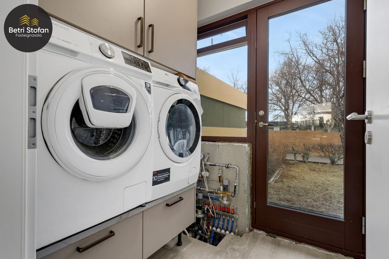 Þvottahús: Staðsett inn af eldhúsi, aðstaða fyrir þvottavél og þurrkara.