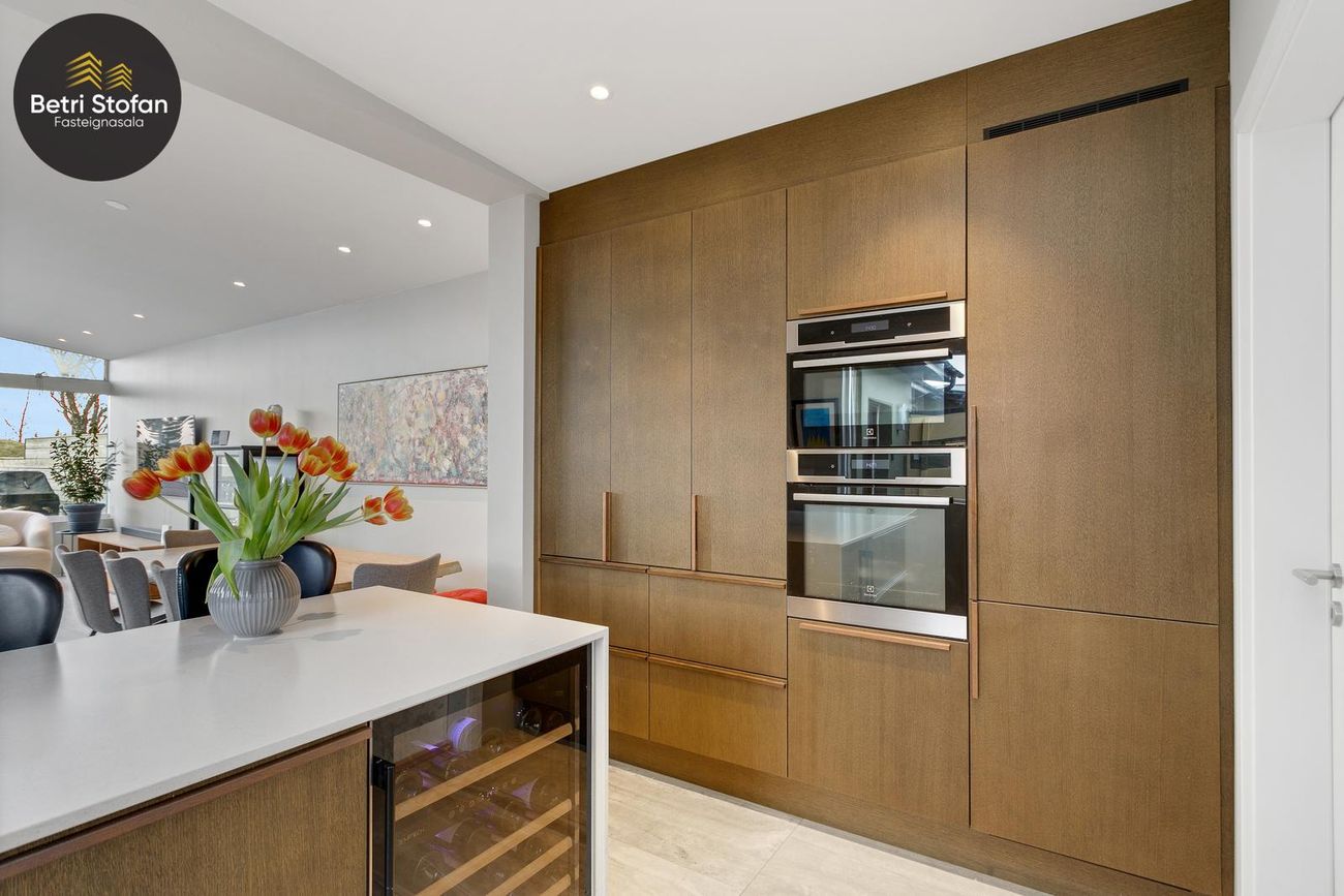 Eldhús: Nýleg innrétting frá HTH með steini frá S.Helgasyni, kvartz. Vönduð tæki, tveir ofnum, annar með innbyggðri örbylgju, helluborð með fimm hellum. Gólfhiti.