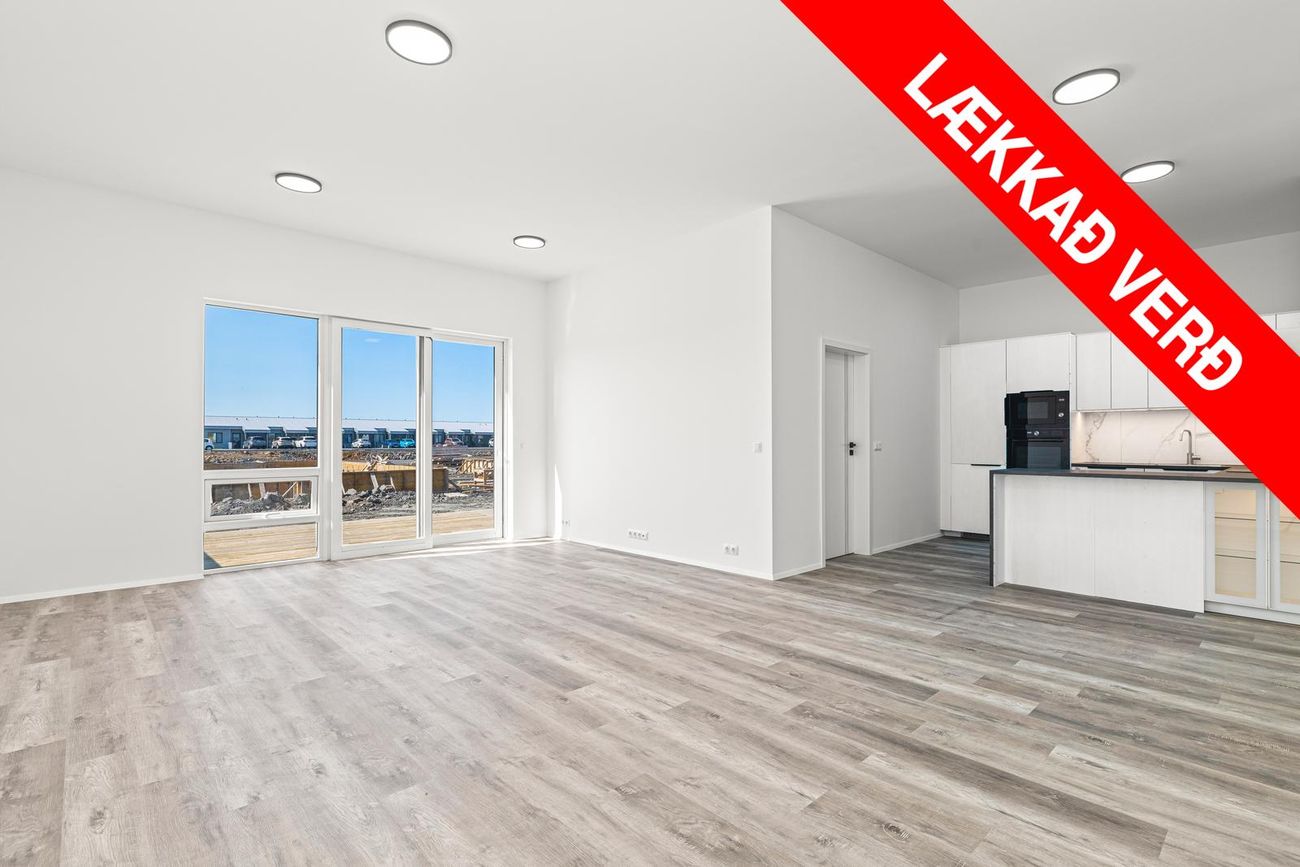 Rýmið er með aukinni lofthæð, bjart og rúmgott og er samlyggjandi með eldhúsi. -Útgengt er úr stofu út á