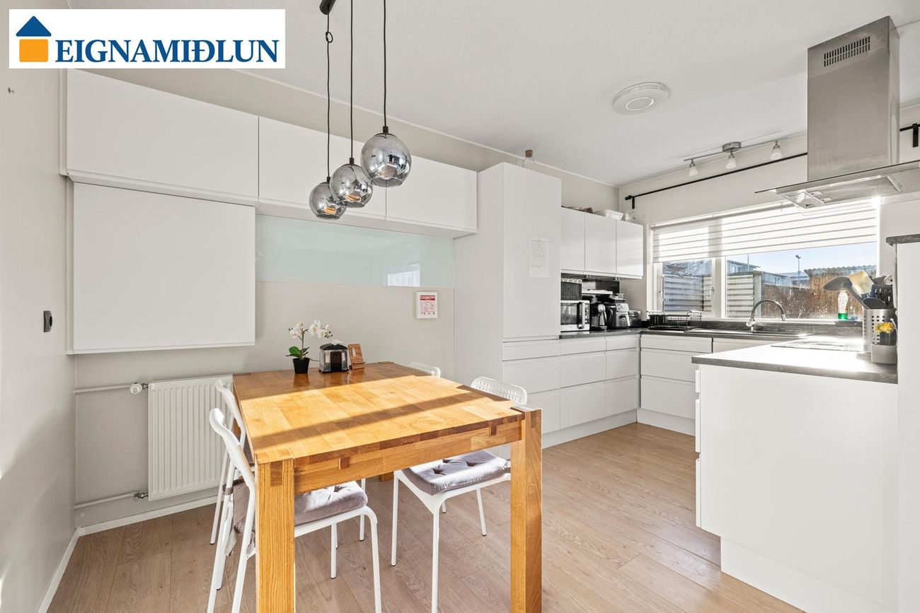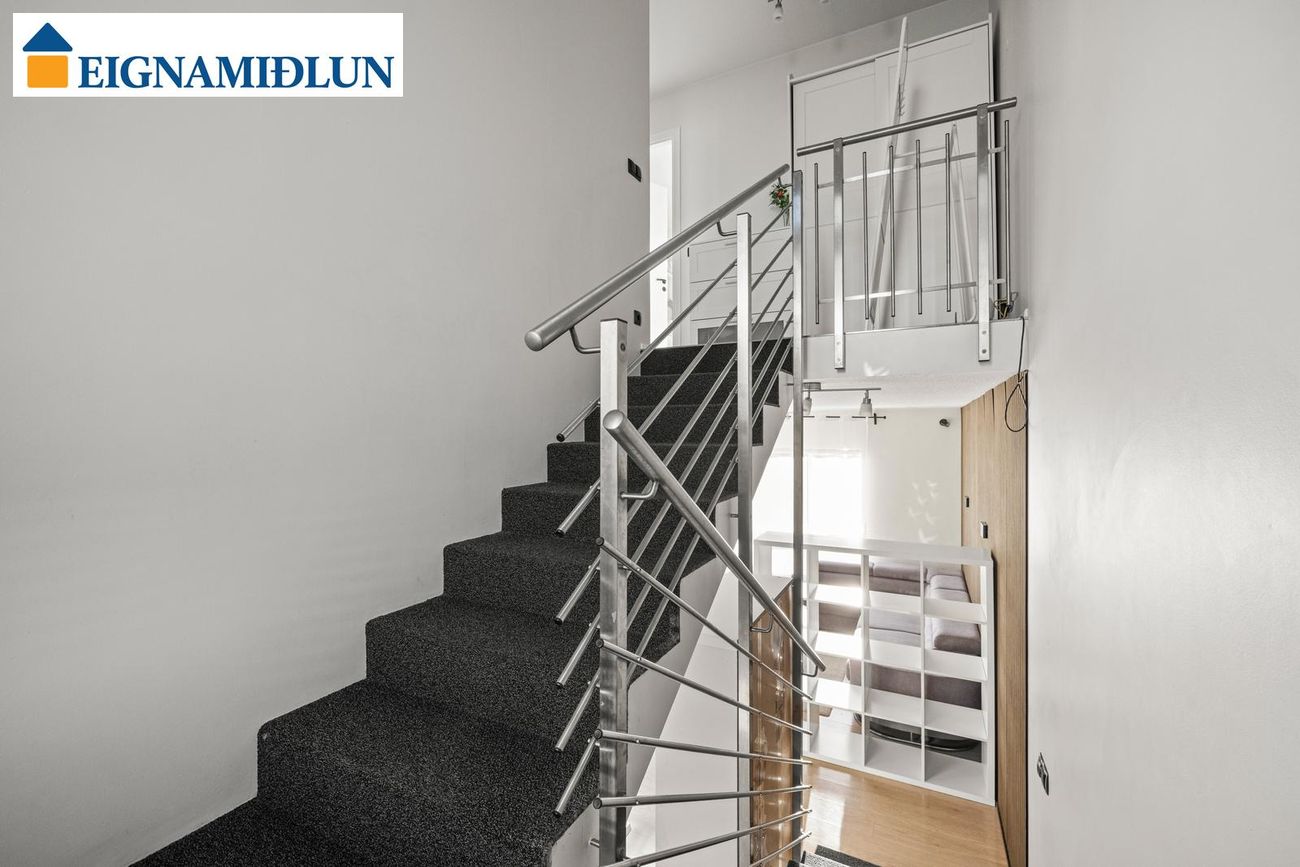 Raðhús í Árbæ með opnu rými á neðri hæð og svefnherbergjum á efri hæð.