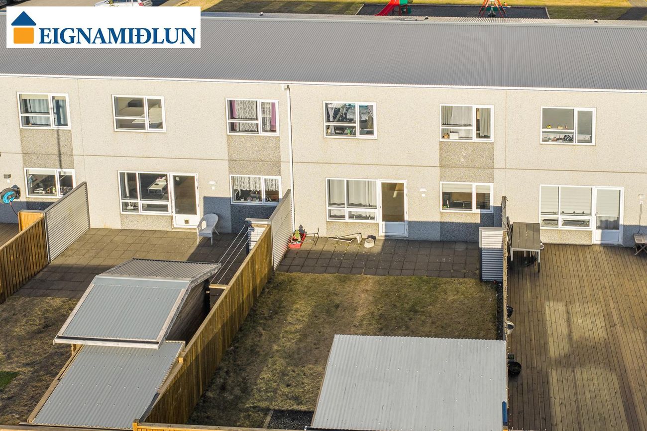 Garðurinn er afgirtur og lokaður með góðri útigeymslu.