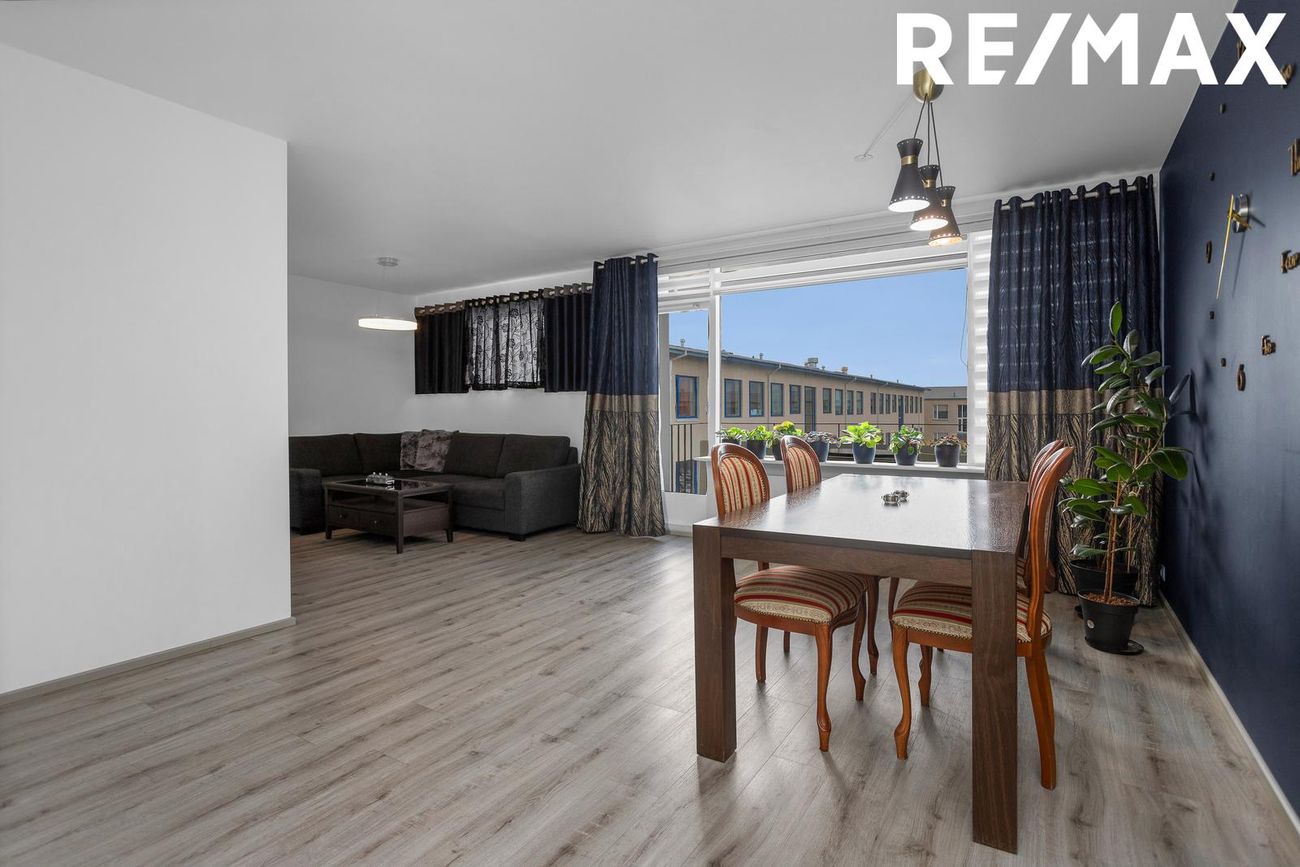 Íbúðin, sem er 120,1 m², er með fjórum svefnherbergjum og vel skipulögðum rýmum þar sem allar innréttingar, gólfefni og baðherbergi hafa verið endurnýjuð á smekklegan hátt. Björt og rúmgóð stofa og borðstofa með útgengi á svalir. Eldhúsið er vel skipulagt og tengist þvottahúsi og búri sem eykur virkni og þægindi. Svefnherbergin eru fjögur eru öll rúmgóð. Sameign er snyrtileg og hefur nýlega verið tekin í gegn með nýjum gólfefnum og málningu. Eigninni fylgir sér merkt bílastæði á lóð með rafhleðslustaur uppkominn en án hleðslustöðvar.