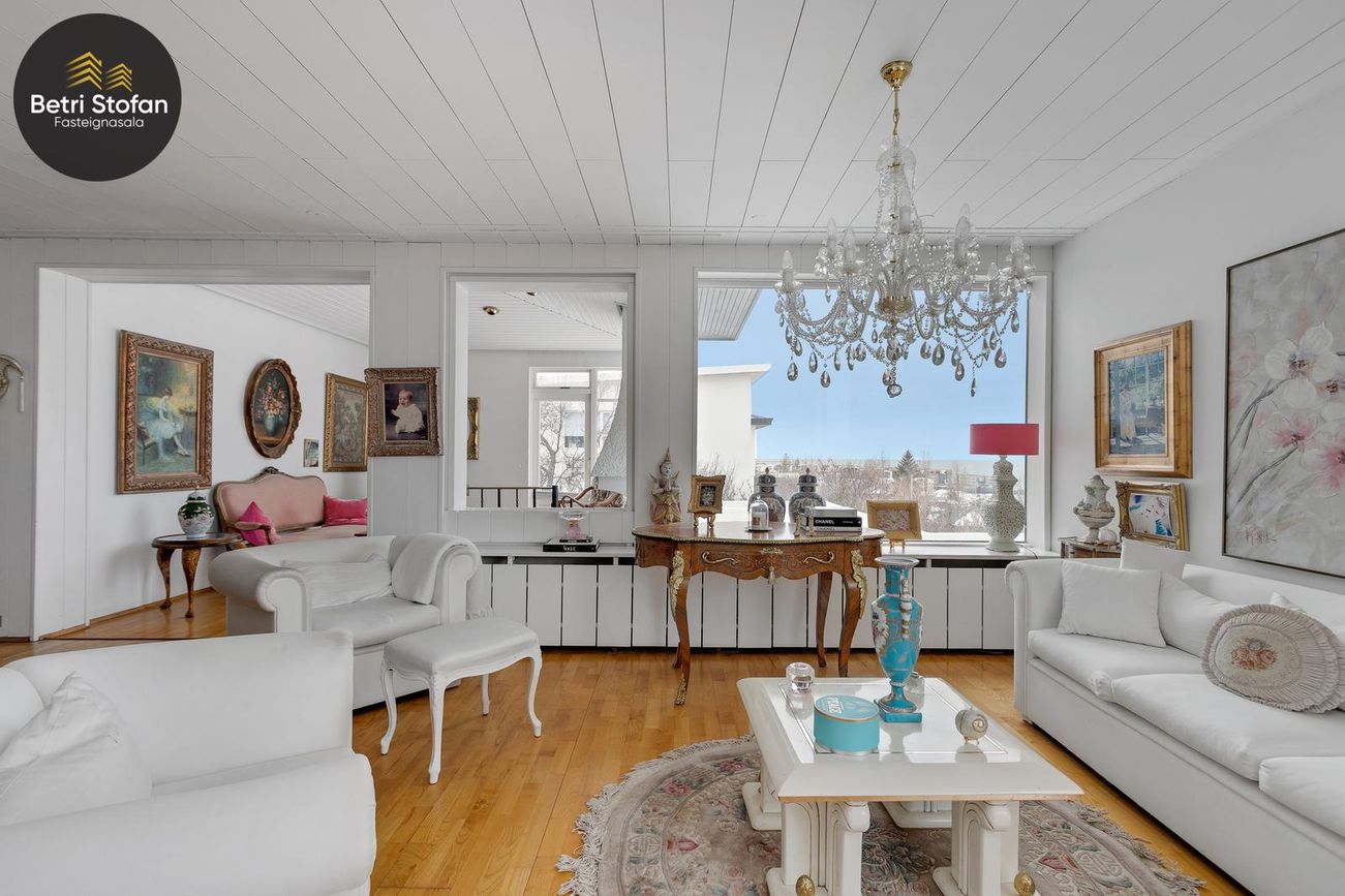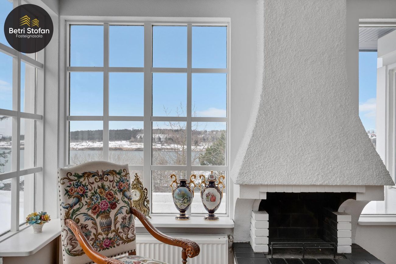 Þreföld stofa, borðstofa, stofa og arinstofa með glæsilegu