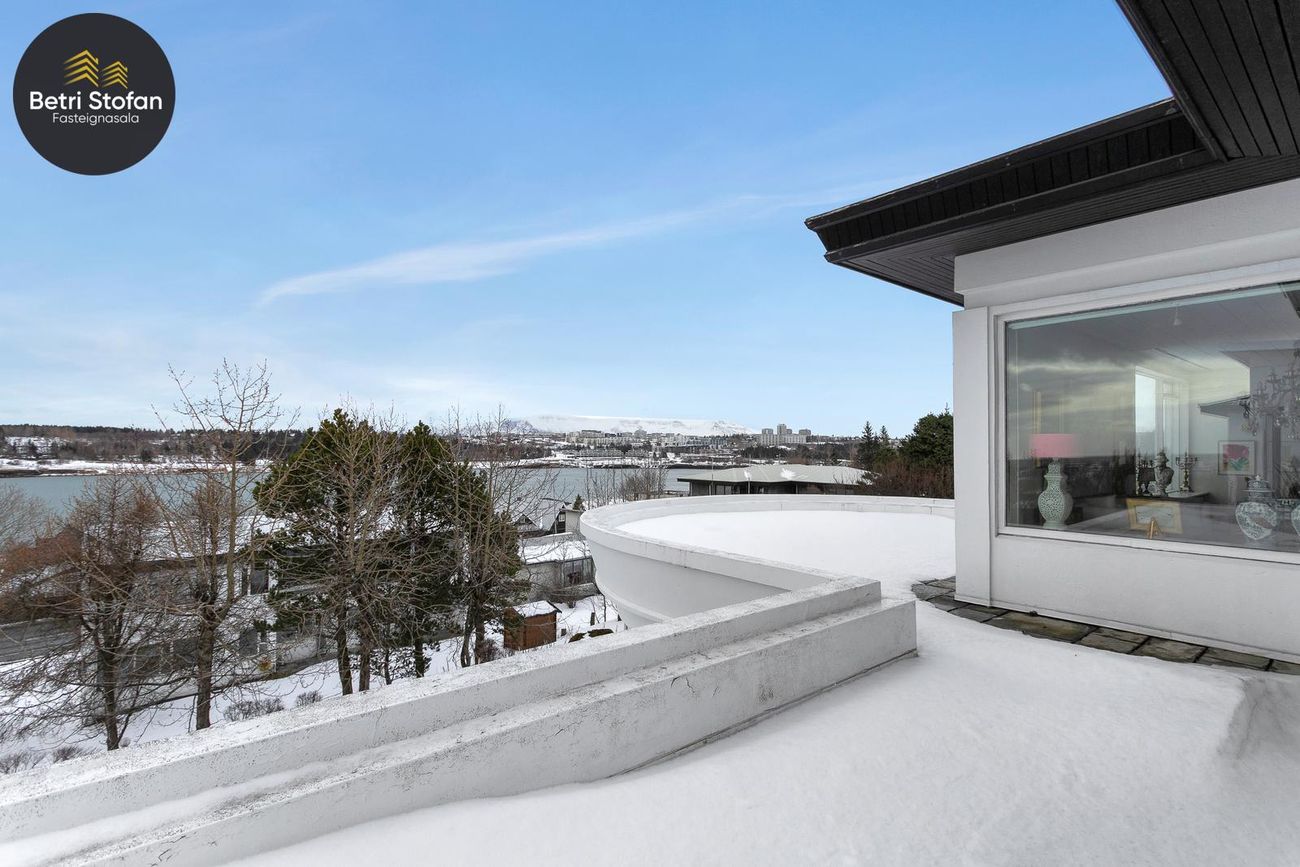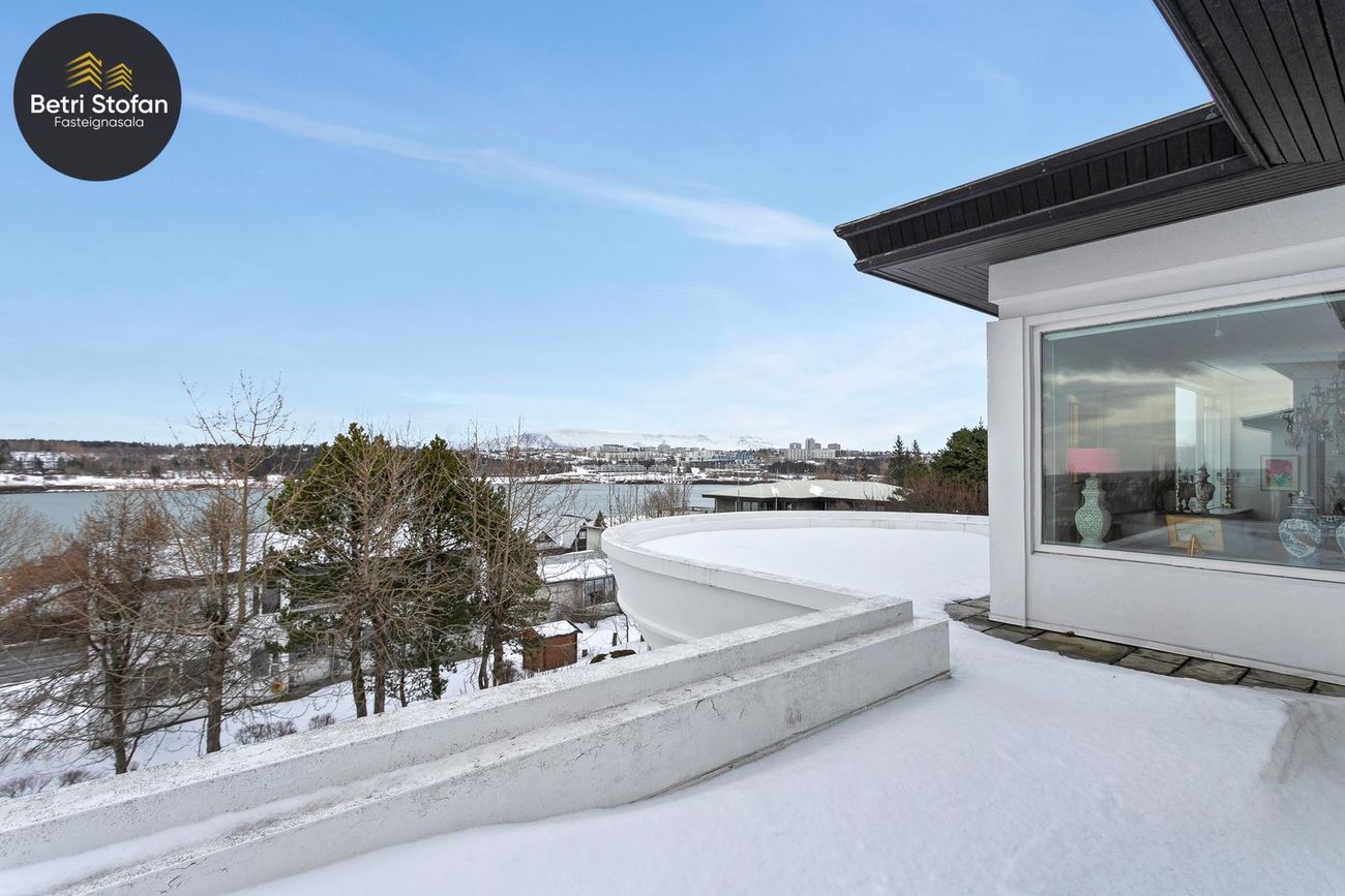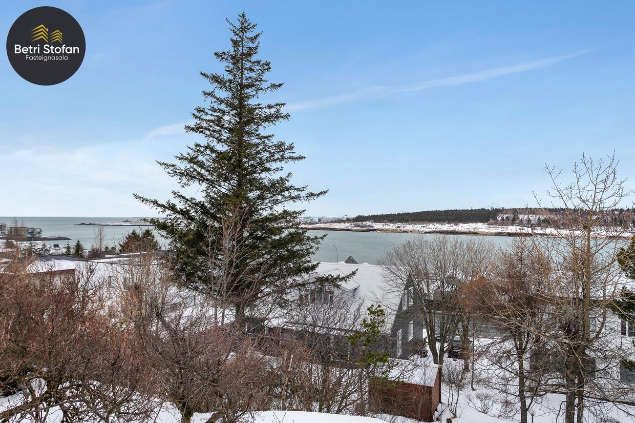 útsýni til sjávar og yfir til Nauthólsvíkur og víðar.