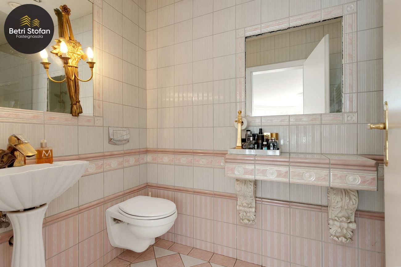 Hægt er að ganga niður hringstiga innan íbúðar niður á