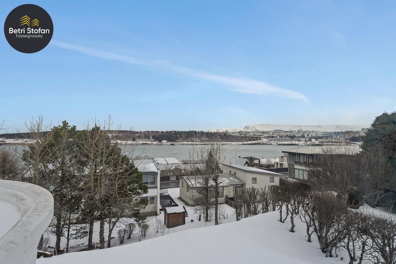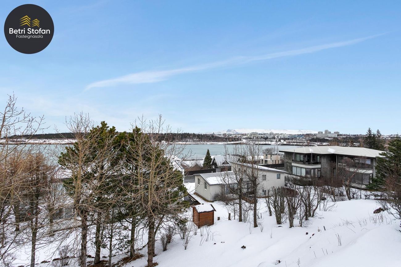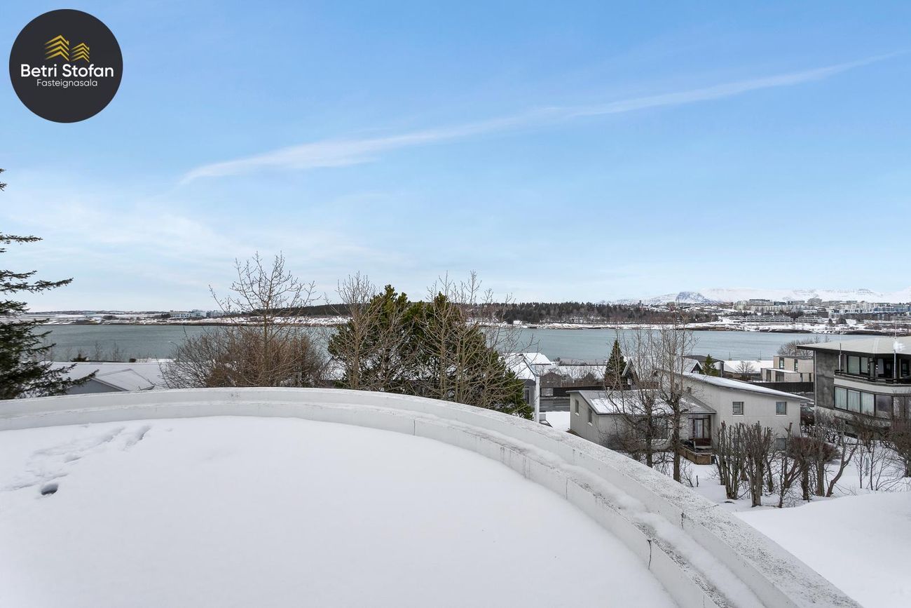 útsýni til sjávar og yfir til Nauthólsvíkur og víðar.