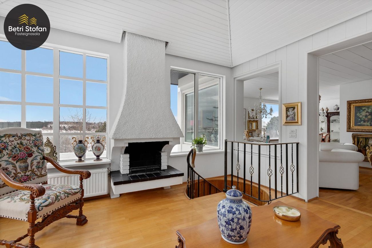Þreföld stofa, borðstofa, stofa og arinstofa með glæsilegu