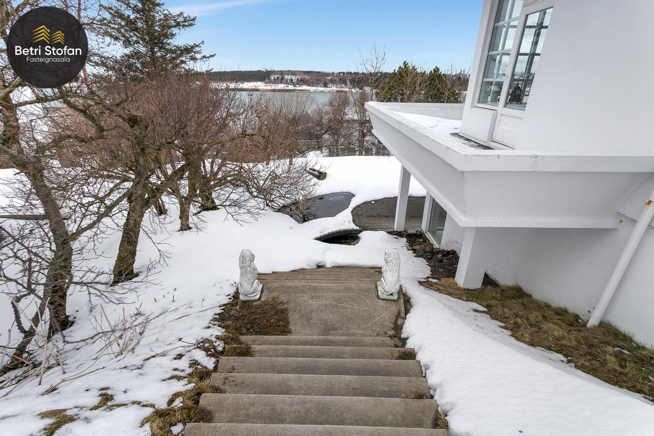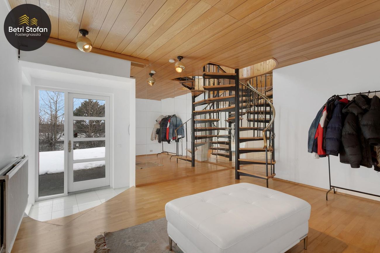 Hægt er að ganga niður hringstiga innan íbúðar niður á