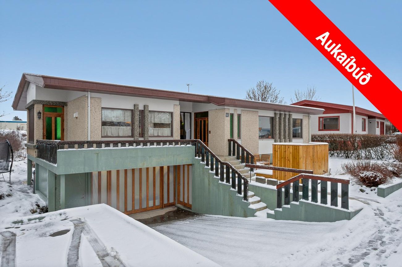 220,2 fm einbýlishús á tveimur hæðum með 6 herbergi. Möguleiki á aukaíbúð á jarðhæð með sérinngangi. Nálægt skóla, sundlaug og miðbæ.