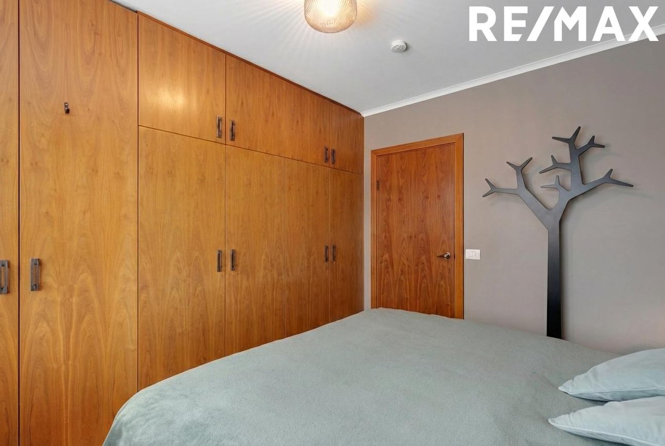 Fjögur svefnherbergi á efri hæð: rúmgott hjónaherbergi með fataskáp og þrjú barnaherbergi.