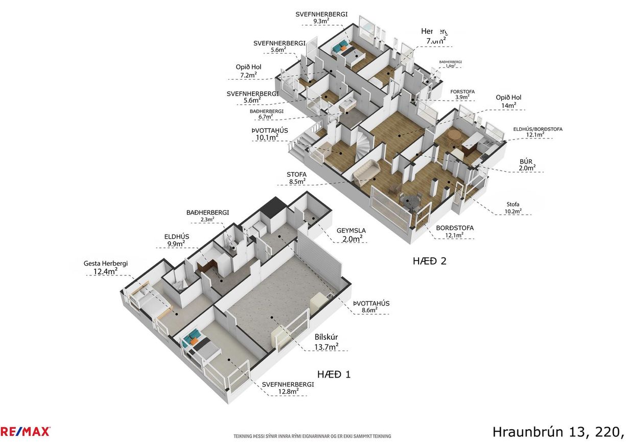 Möguleiki á aukaíbúð á jarðhæð með eldhúsaðstöðu, tveimur svefnherbergjum og baðherbergi.