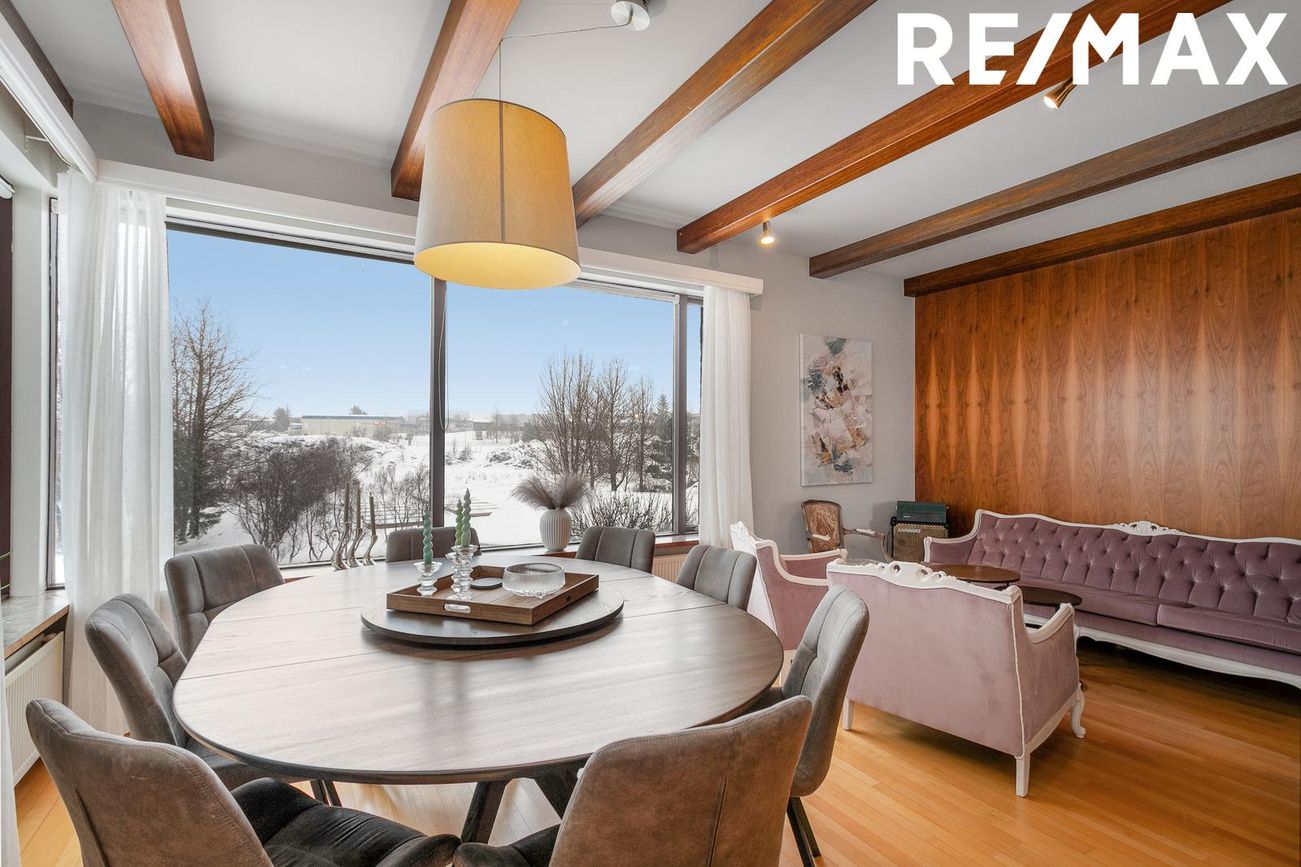 220,2 fm einbýlishús á tveimur hæðum með 6 herbergi. Möguleiki á aukaíbúð á jarðhæð með sérinngangi. Nálægt skóla, sundlaug og miðbæ.