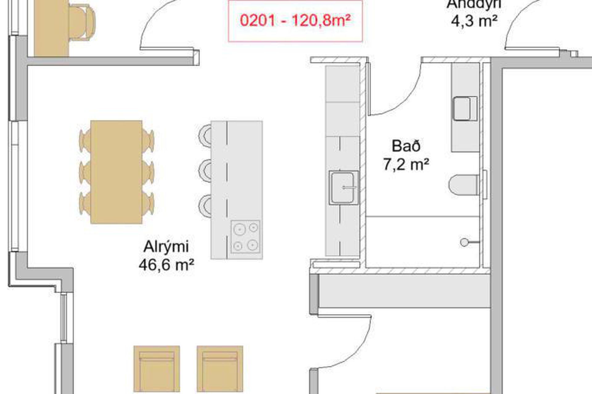 | 3 | 89,60 m² | 89.500.000 kr. 6. febrúar 2026 | 85.500.000 kr. 24. mars 2026 |