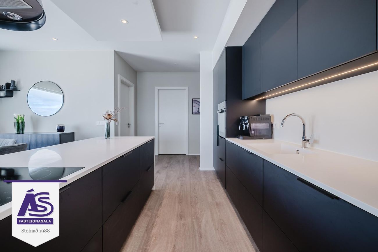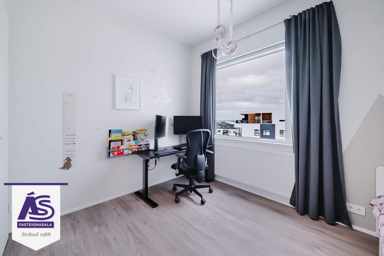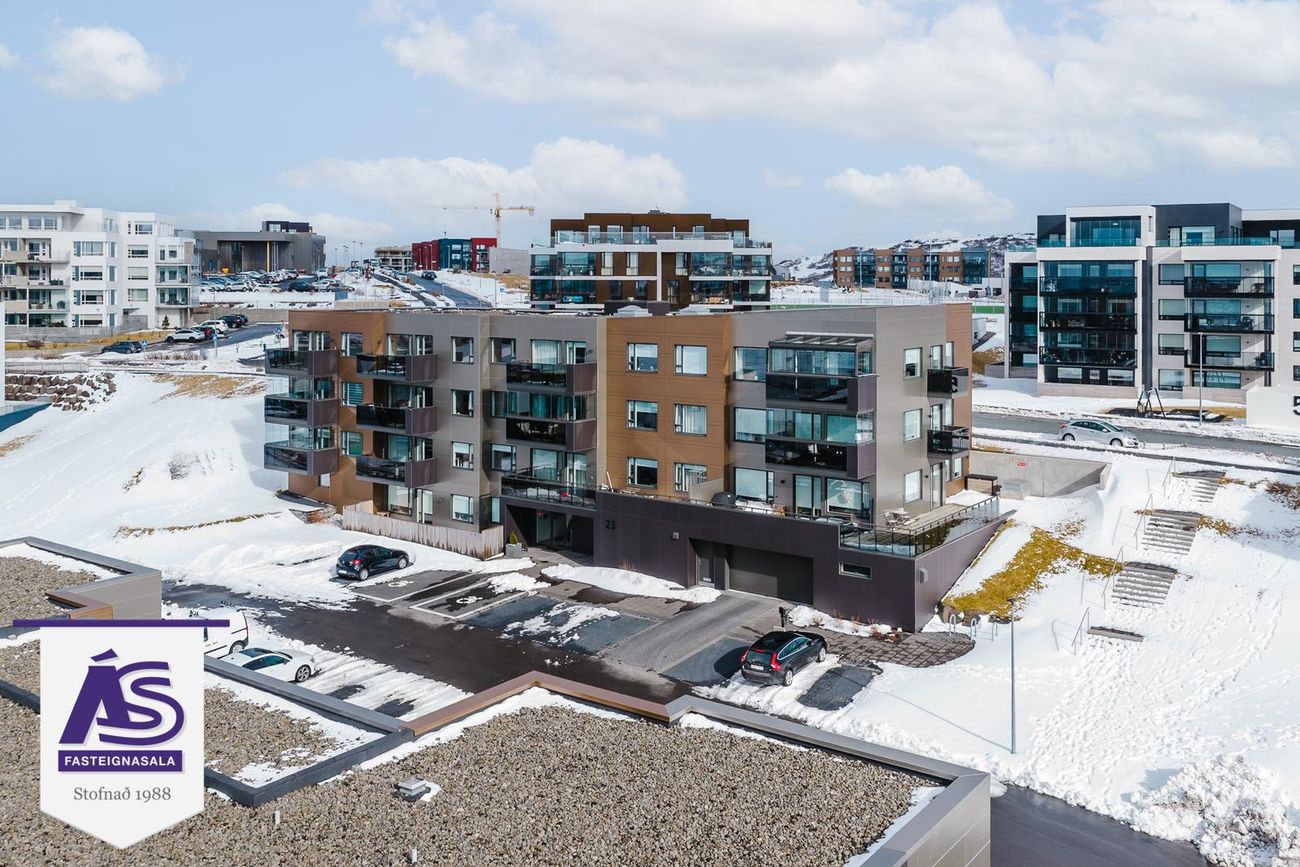 Lind Fasteignasala kynnir nýjar og glæsilegar 3-4 herbergja íbúðir í vönduðu og fallegu 4ra hæða fjölbýlishúsi á besta stað í Urriðaholti. Íbúðirnar afhendast fullbúnar með gólfefnum, innbyggðum ísskáp og uppþvottavél.Afhending eigi síðar en 30.10.21Íbúð 0401: 126,7 fm, 4ra herbergja íbúð á 4. hæð með stæði í bílageymslu.Um er að ræða 13 íbúða fjölbýli á 4 hæðum með aðalinngangi á 1. hæð ásamt lokuðu bílastæðahúsi. Húsið er í Urriðaholti í Garðabæ sem er einstakt og nýstárlegt hverfi. Umkringt óspilltri náttúru en um leið í nálægð við góðar samgönguæðar og sérlega vel staðsett innan höfuðborgarsvæðisins. Í jaðri hverfisins eru helstu útivistarsvæði höfuðborgarsvæðisins, ósnortin náttúra og einn glæsilegasti golfvöllur landsins.Nánari lýsing:Anddyri: Parket á gólfi, fataskápur.Eldhús: Parket á gólfi, innrétting með góðu skápa- og borðplássi ásamt eldunareyju, opið við stofu.Alrými: Parket á gólfi, opið og bjart rými, útgengt út á svalir.Hjónaherbergi: Parket á gólfi, fataskápur. 13,9 fm.Herbergi: Parket á gólfi, fataskápur. 10,1 fm.Herbergi: Parket á gólfi, fataskápur. 10,7 fm.Baðherbergi: Flísar á gólfi og veggjum að hluta, sturta, upphengt salerni, handklæðaofn.Þvottahús: Sér þvottarhús, innrétting undir þvottavél og þurrkara.Svalir: Í suðvestur.Geymsla: Í sameign, 12,6 fm.Hjóla- og vagnageymsla: Í sameign.Bílastæði: Bílastæði í bílgeymslu fylgir merkt B01 á teikninguLóð: Lóðir verða frágengnar, frágengin bílastæði og hellulagðar gönguleiðir. Sameiginleg útisvæði verða frágengin í samræmi við lóðarhönnun. Grassvæði verða fágengin og gróðurbeð grófjöfnuð, gróður fylgir ekki. Séreignareitir verða frágengnir en girðingar, skjólveggir o.þ.h fylgja ekki. Leiktæki og búnaður á lóð fylgir ekki.Aðkoma að húsi verður hellulögð og snjóbræðsla þar sem við á samkvæmt lagnateikningum. Aðalinngangur er á 1.hæð ásamt innkeyrslu í bílageymslu.Gólf eru parketlögð harðparketi frá Ebson ehf. og gólf í baðherbergjum og þvottahúsum eru flísalögð með flísum frá Ebson ehf.Innréttingarnar eru af vandaðri gerð frá Proexport, framleiðandi er Baltasfurniture. Framhliðar mattsvartar að lit. Borðplötur eru sérsmíðaðar úr hvítu corian steinefni 24mm þykkar með vaski úr sama efni án samskeyta. Eldhústæki eru Samsung að undanskildum háfum sem eru af gerðini Elica. Innbyggður ísskápur, frystir og uppþvottavél fylgja. Hreinlætistæki eru frá Grohe, Salerni eru upphengd og með innbyggðum skolkassa í vegg gerð Grohe/Laufen.Innihurðar eru yfirfelldar og sprautulakkaðar (hvítar) af gerðini Dana frá Parka ehf.Burðakerfi hússins er steinsteypt og útveggir einangraðir að utan, klæddir með vönduðum álklæðningum frá Áltak einnig er 1 hæð og hluti 2 - 4 hæðar með sementstrefjaplötum frá málmtækni sem tryggir lágmarks viðhald hússins. Allir gluggar eru úr ál/tré kerfi frá Velfag og glerjaðir með einangrunargleri.Bílastæði 10 bílastæði eru í bílageymslu og gert er ráð fyrir 13 útibílastæðum fyrir Hraungötu 23 og þar af 2 fyrir hreyfihamlaða.Frekari upplýsingar í skilalýsingu hjá fasteignasala.Kaupandi greiðir 0,3% af væntanlegu brunabótamati þegar það verður lagt á íbúðina.Innimyndir af eigninni eru af sambærilegum innréttingum sem teknar voru í Hraungötu 21.Frekari upplýsingar veitir Auður Magnúsdóttir Löggiltur fasteignasaliSímanúmer: 848-2666Tölvupóstur: Magnús Már Lúðvíksson Löggiltur fasteignasali símanúmer: 699-2010Tölvupóstur: Byggingaraðili hússins er Þarfaþing ehf sem er 28 ára gamalt fyrirtæki og hefur því áralanga reynslu af framkvæmdum fyrir opinbera aðila, fyrirtæki og einstaklinga. Fyrirtækið leggur áherslu á vandaðar íbúðir, góða þjónustu og skil íbúða á réttum tíma.Söluverðmat Hér getur þú óskað eftir verðmati á eigninni þinni þér að kostnaðarlausu og án allra skuldbindingaLind Fasteignasala Uppspretta ánægjulegra viðskipta