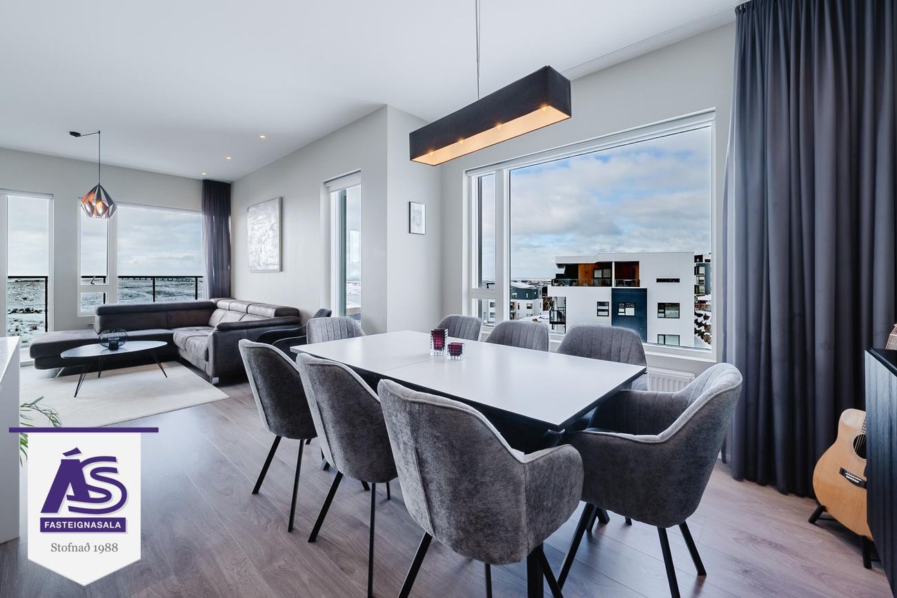 Lind Fasteignasala kynnir nýjar og glæsilegar 3-4 herbergja íbúðir í vönduðu og fallegu 4ra hæða fjölbýlishúsi á besta stað í Urriðaholti. Íbúðirnar afhendast fullbúnar með gólfefnum, innbyggðum ísskáp og uppþvottavél.Afhending eigi síðar en 30.10.21Íbúð 0401: 126,7 fm, 4ra herbergja íbúð á 4. hæð m... Sýna meira