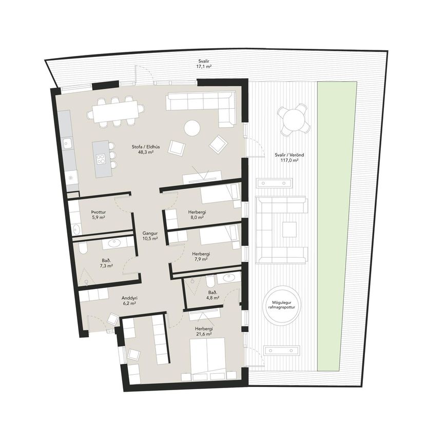 | 3 | 96,60 m² | 89.900.000 kr. 17. apríl 2026 | 111.900.000 kr. 12. nóvember 2025 |