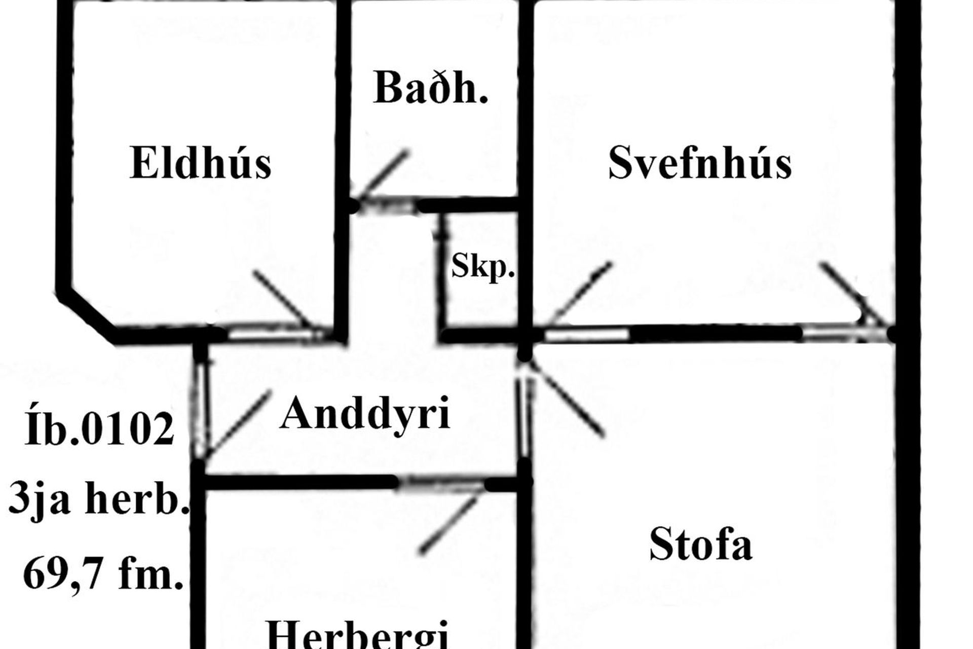 | 3 | 69,70 m² | 52.900.000 kr. 22. febrúar 2024 | 56.800.000 kr. 18. apríl 2024 |