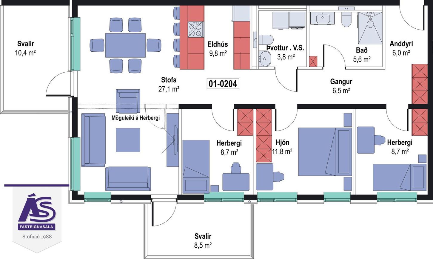0204 ![]() | 4 | 109,80 m² | 84.900.000 kr. 2. október 2025 | 83.000.000 kr. 12. janúar 2026 |