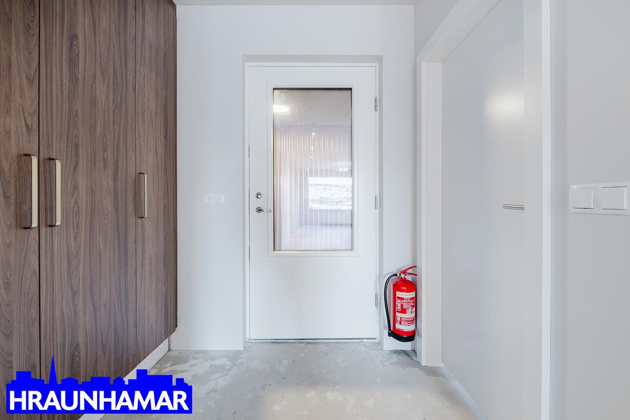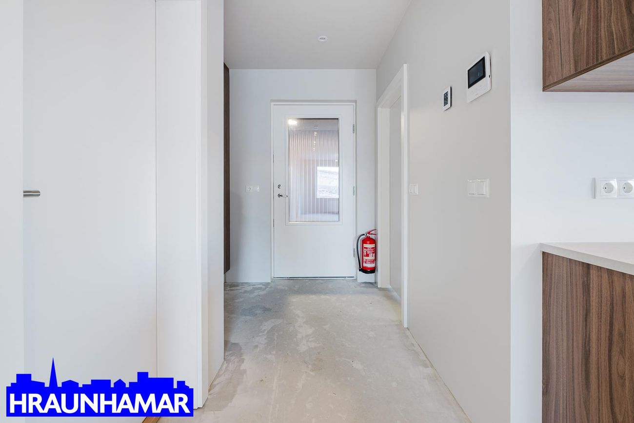 Frágangur sameignar: Anddyri/stigahús er lokað og er það flísalagt á aðkomuhæð með uppsettum póstkössum. Stigar og stigapallar eru teppalagðir, handrið eru á stigagöngum. Allar útidyrahurðir frágengnar og er rafmagnsopnun á aðalinngöngum. Sameign er upphituð með ofnakerfi. Raflagnir í sameign eru fullbúnar með ljósum, sbr. teikningar. Loftræstilagnir eru lagðar skv. teikningu.