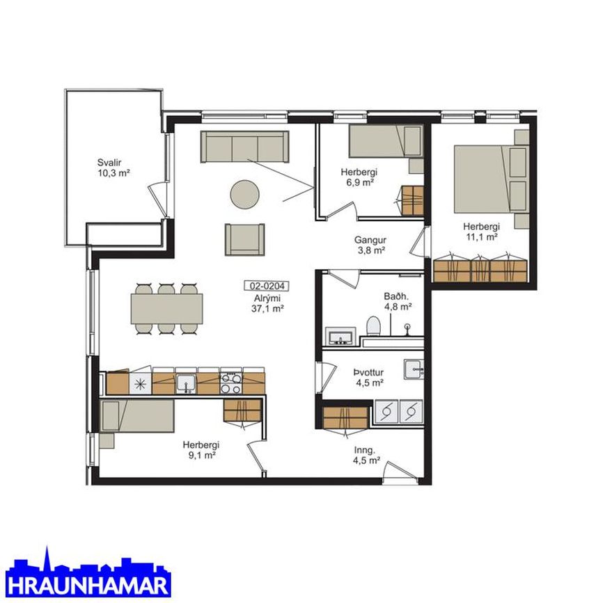 Íbúð 204 er fjögurra herbergja íbúð á annari hæð, bílastæði í kjallara fylgir íbúðinni og þvottahús innan íbúðar. Samtals er íbúðin 107,3 fm og þar af er geymslan 11,3 fm.// VILDARKORT LINDAR //