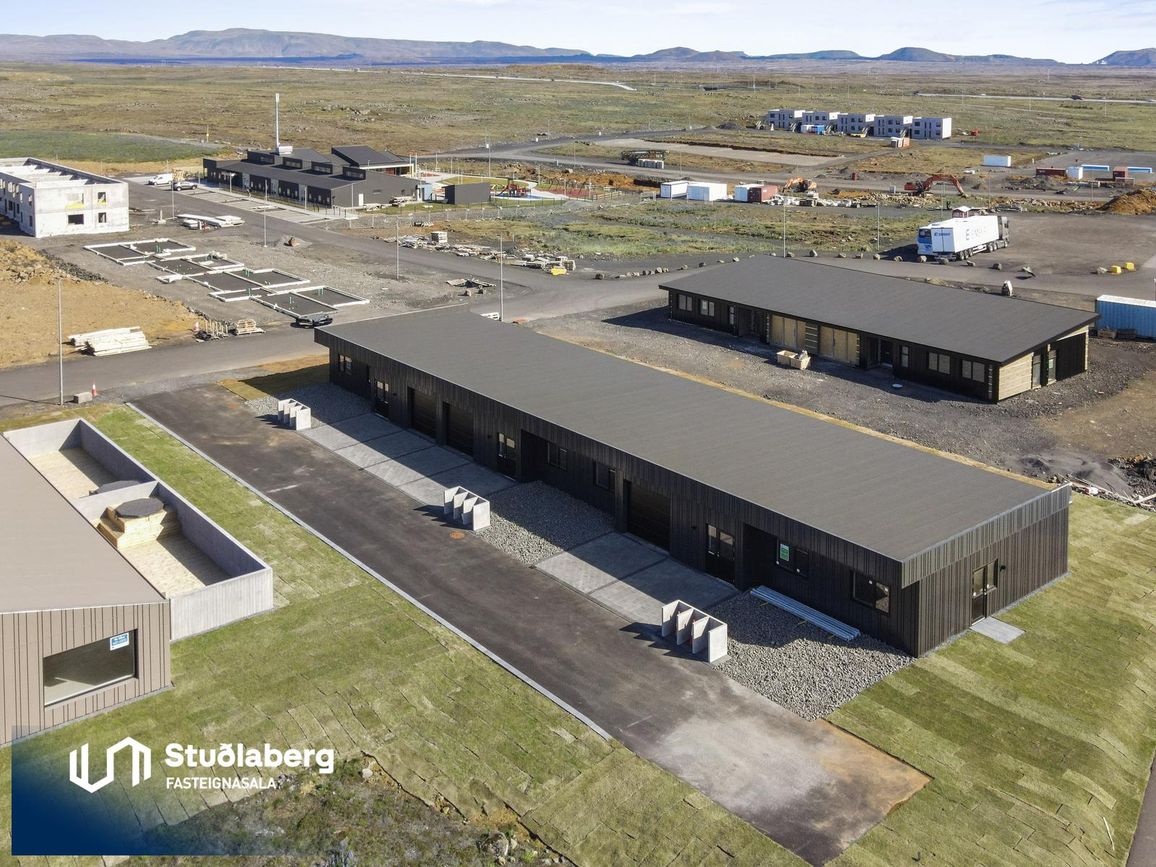 28,4 m² bílastæði með steyptu gólfi og rafhlöðustöð.