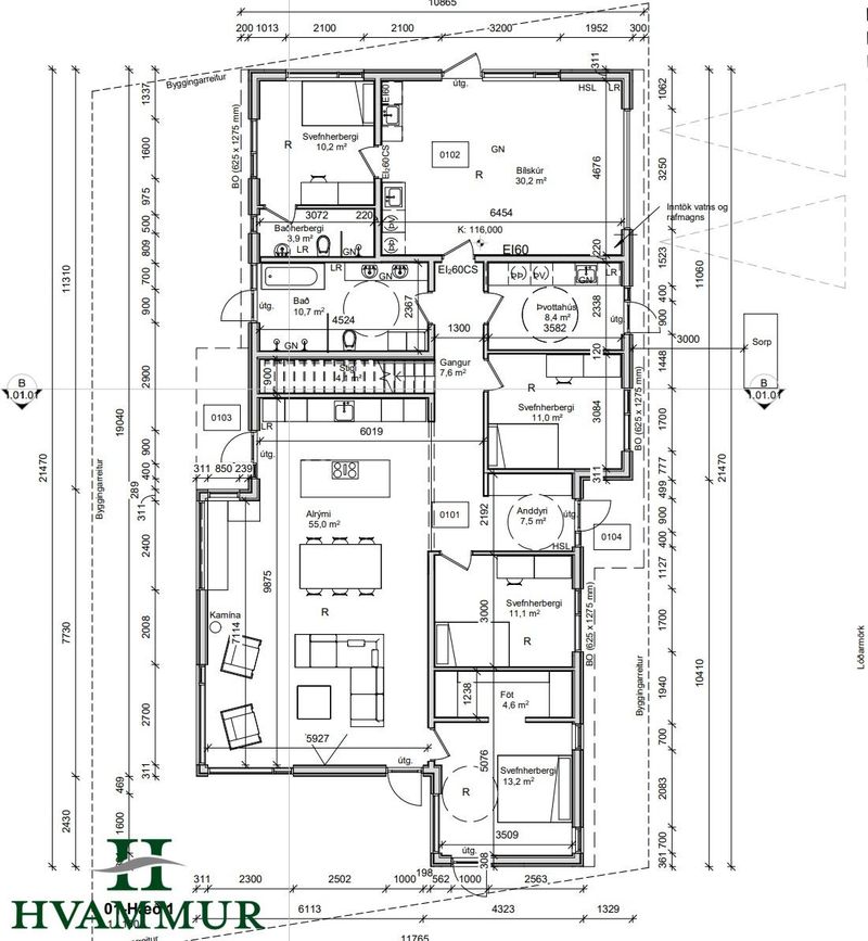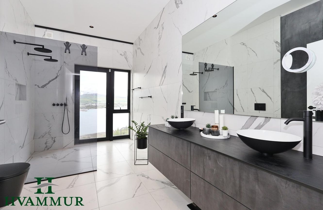 Fast verð, 223,5 m², glæsilegt útsýni, tvö barnaherbergi, hjónaherbergi með fataherbergi, bílskúr með herbergi/geymslu