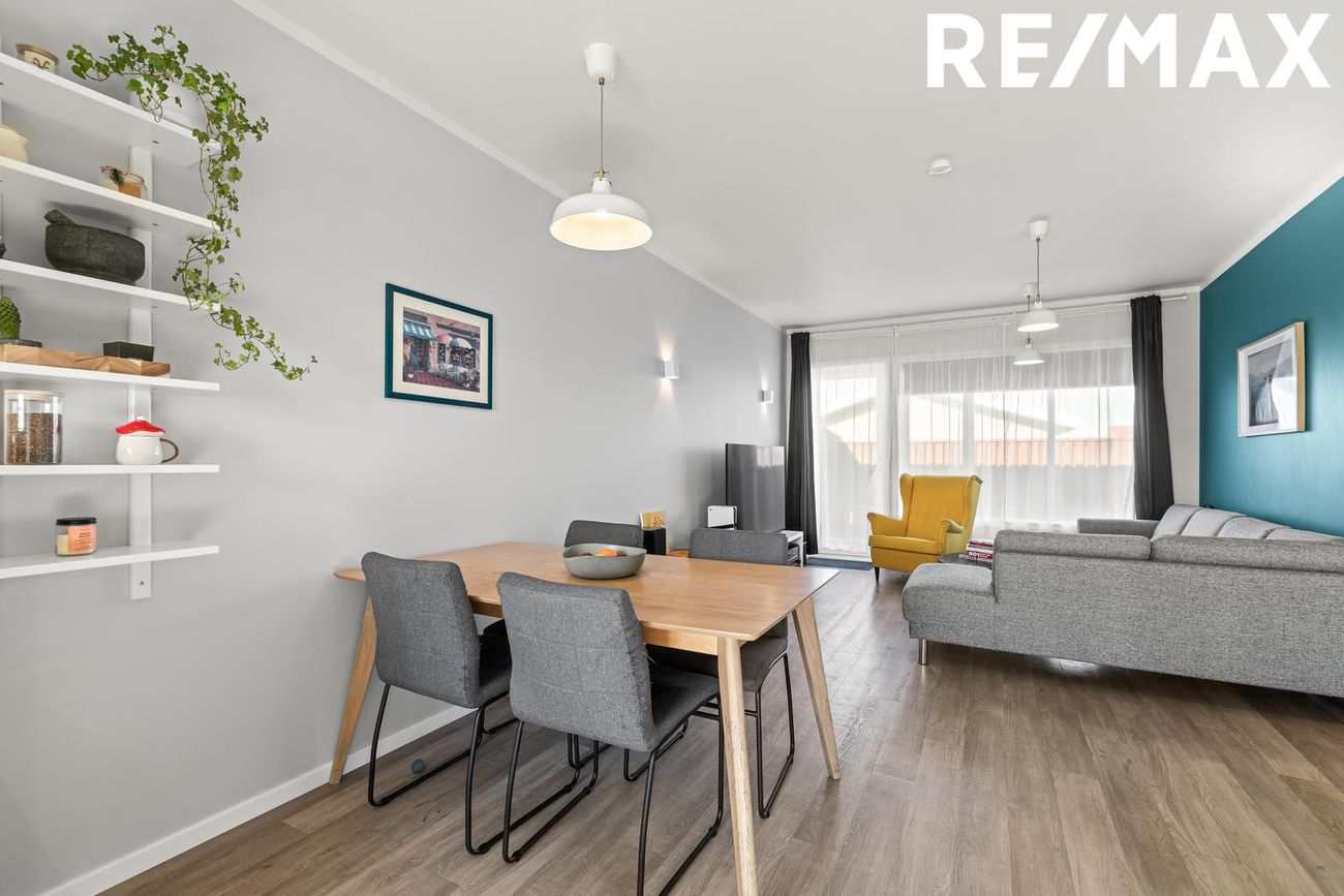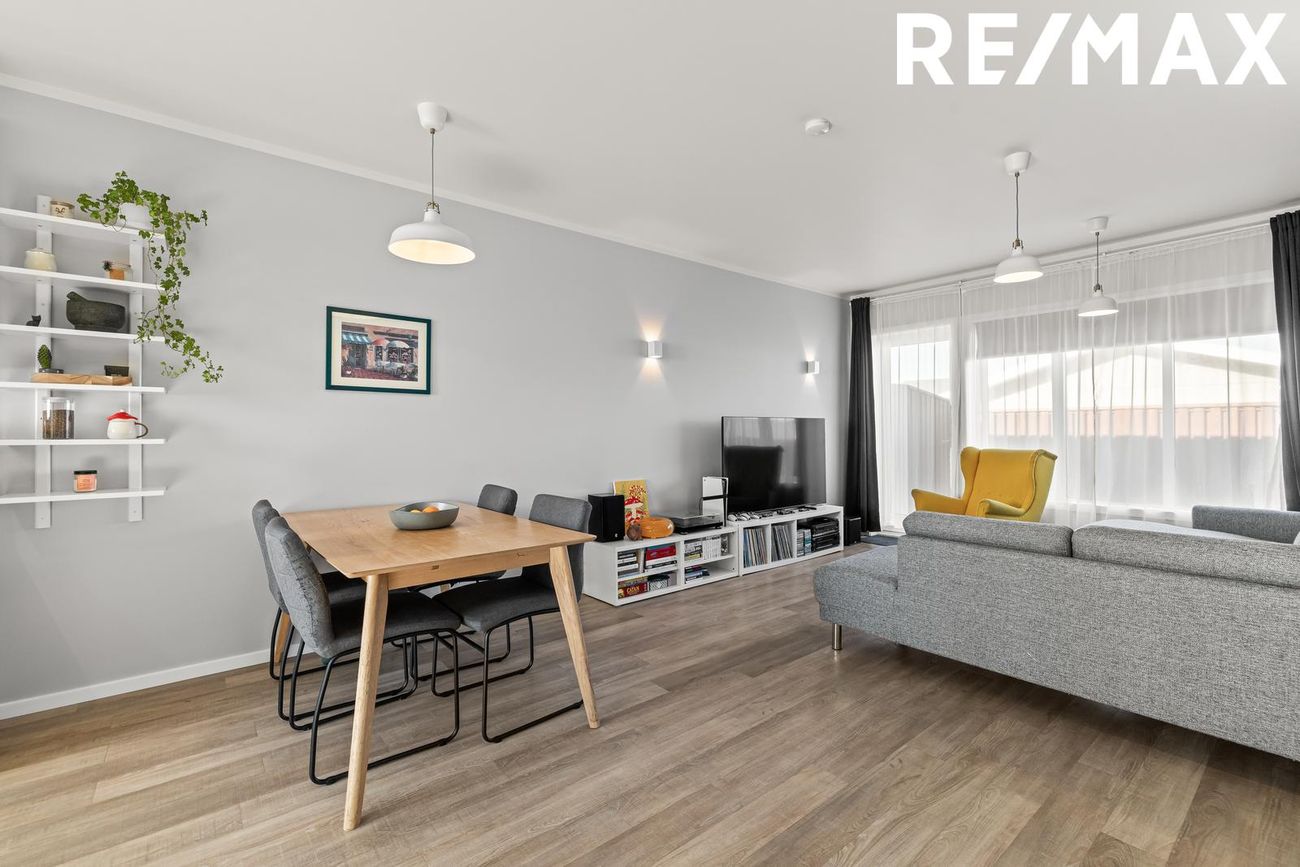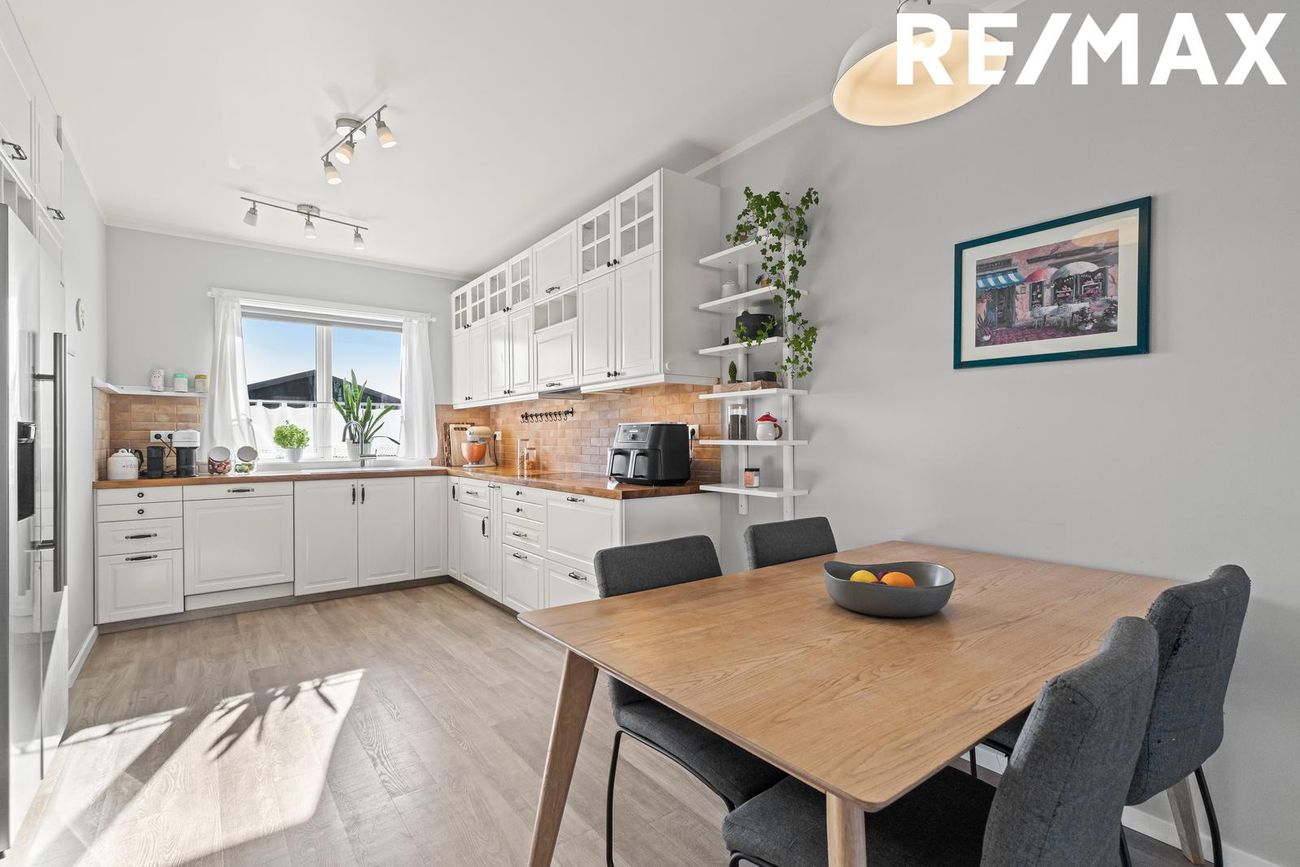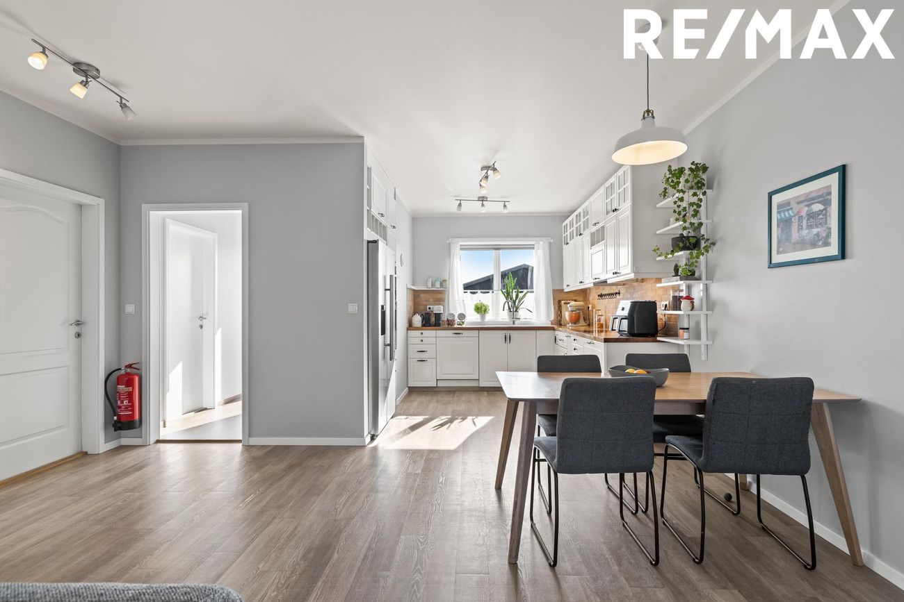Borðstofa / Stofa: borðstofa og stofa eru samliggjandi í alrými, svala hurð er í stofunni þar sem útgengið er út í garð á pall.
