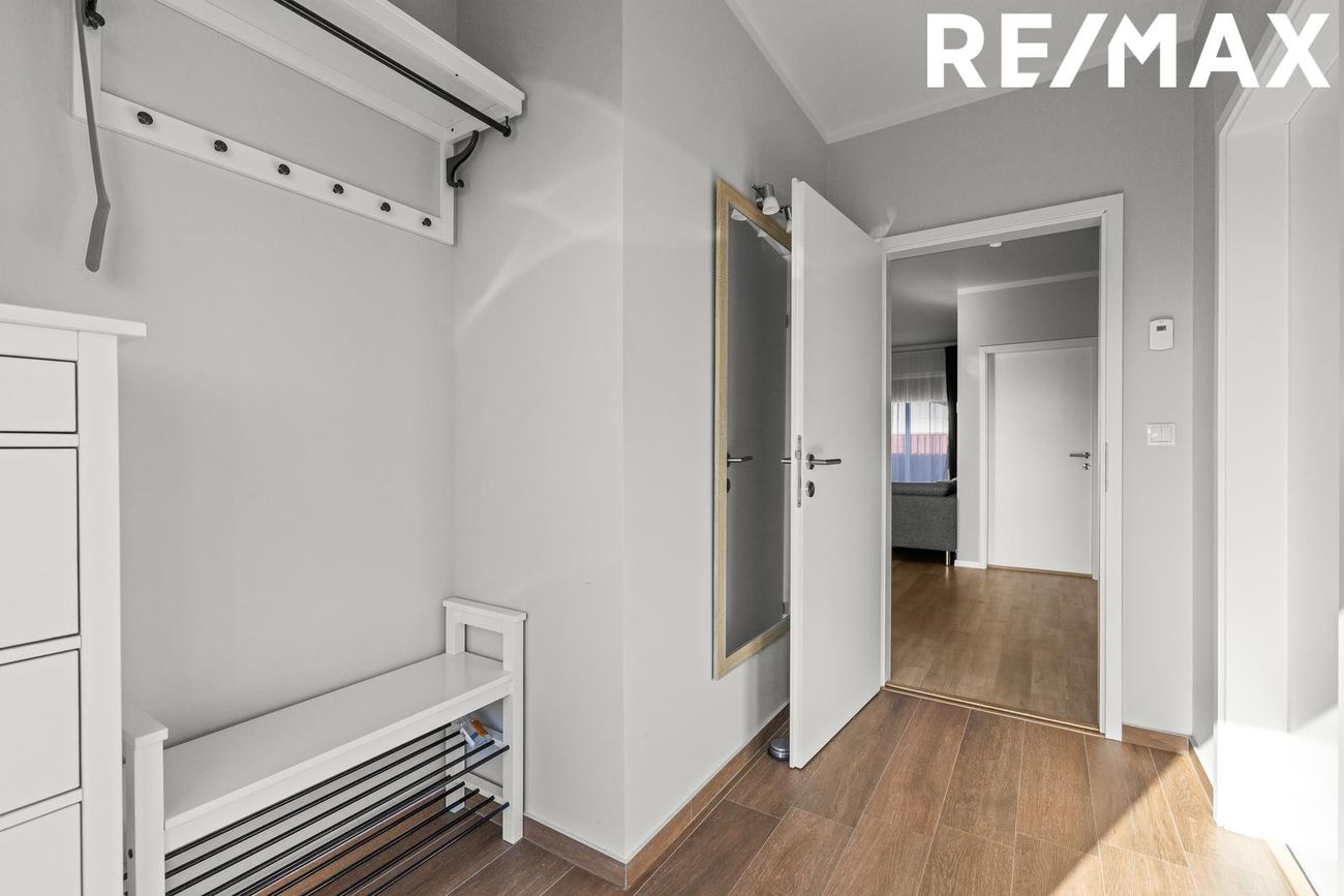 Anddyri: er með fatahengi og flísar á gólfi.