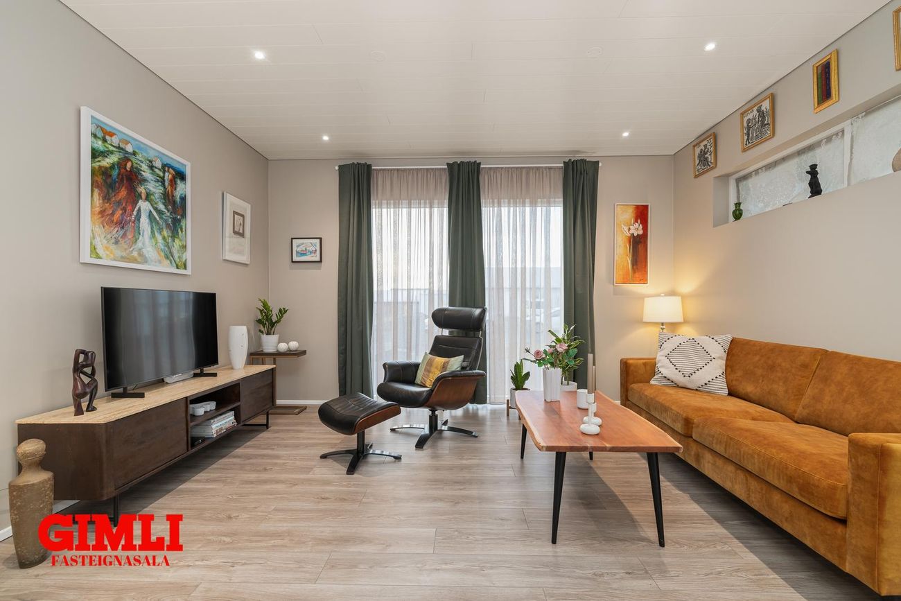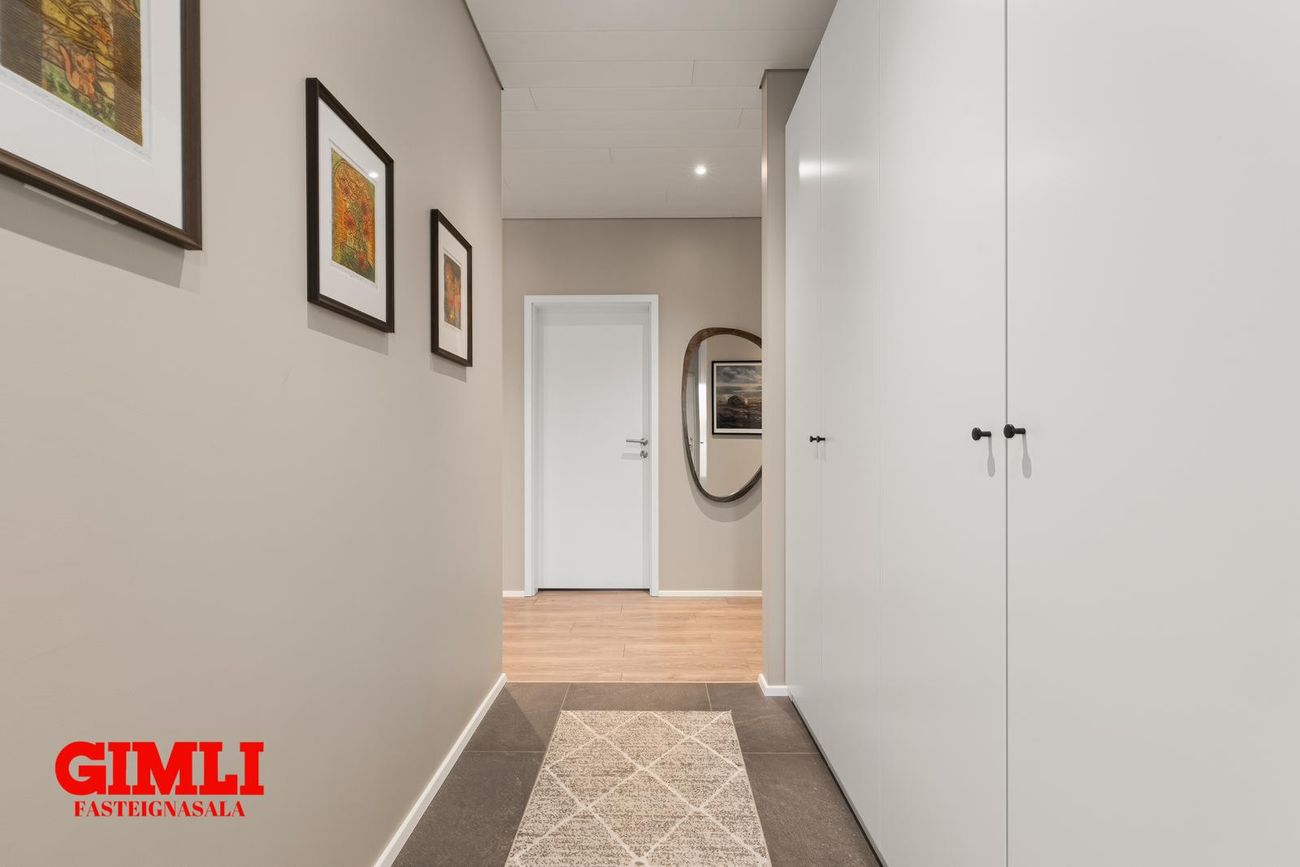 Forstofa, stofa, stórt eldhús með eldunareyju, 3 svefnherbergi, baðherbergi, þvottahús, háaloft, bílskúr með möguleika á fjórða herbergi
