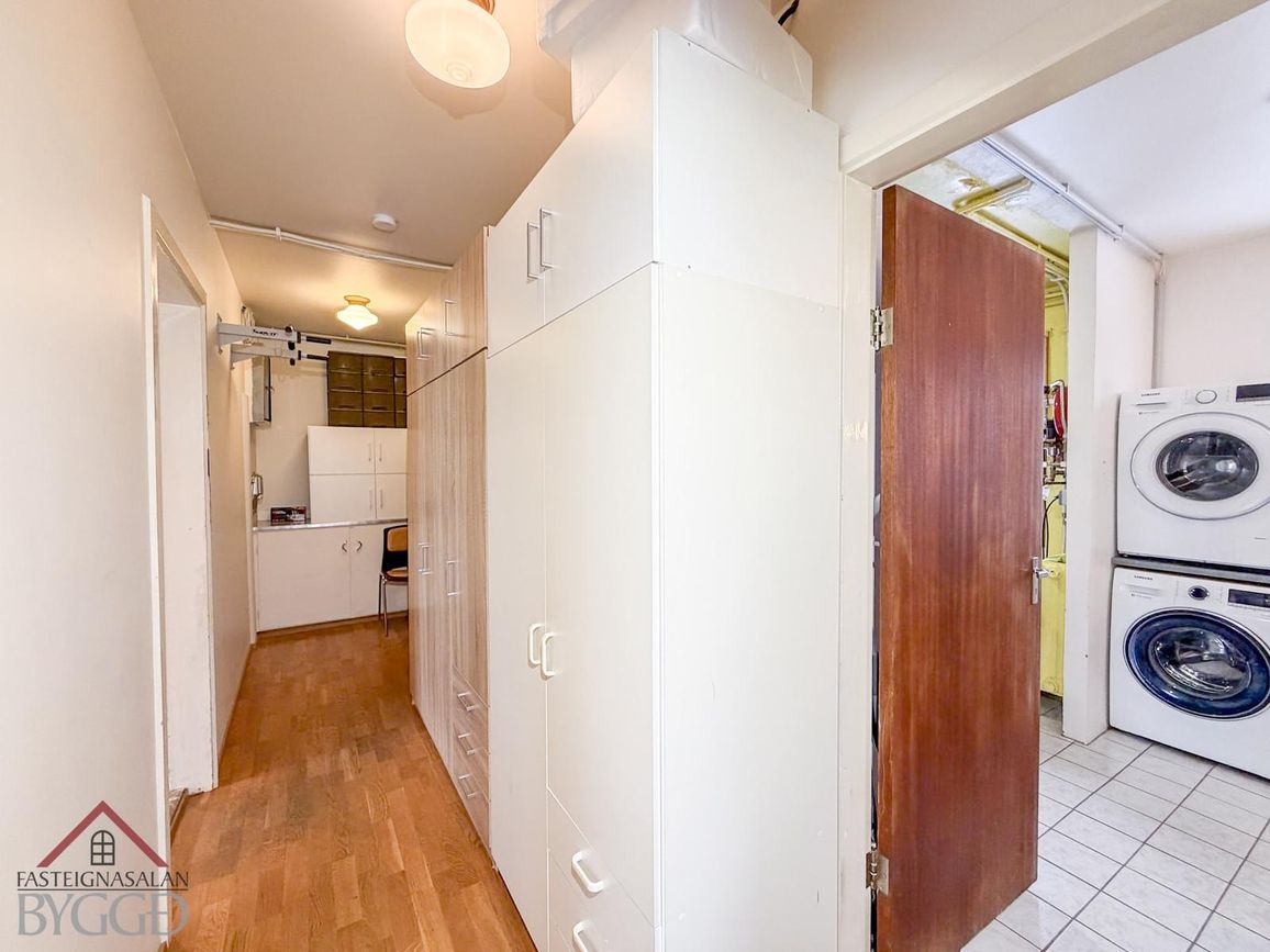 Geymsla á neðri hæð og við eldhús. Aukin geymsla í bílskúr.
