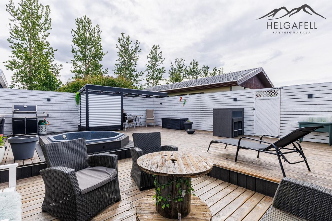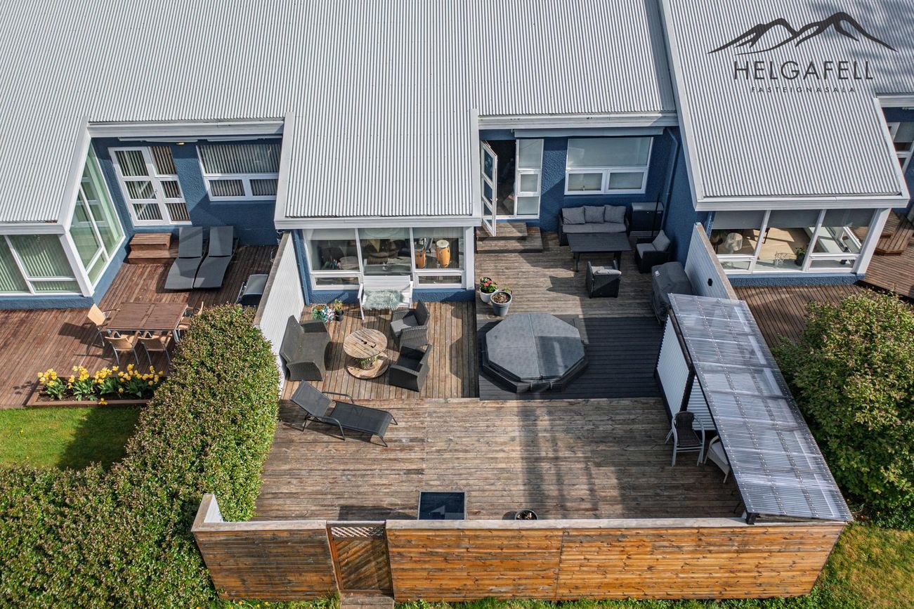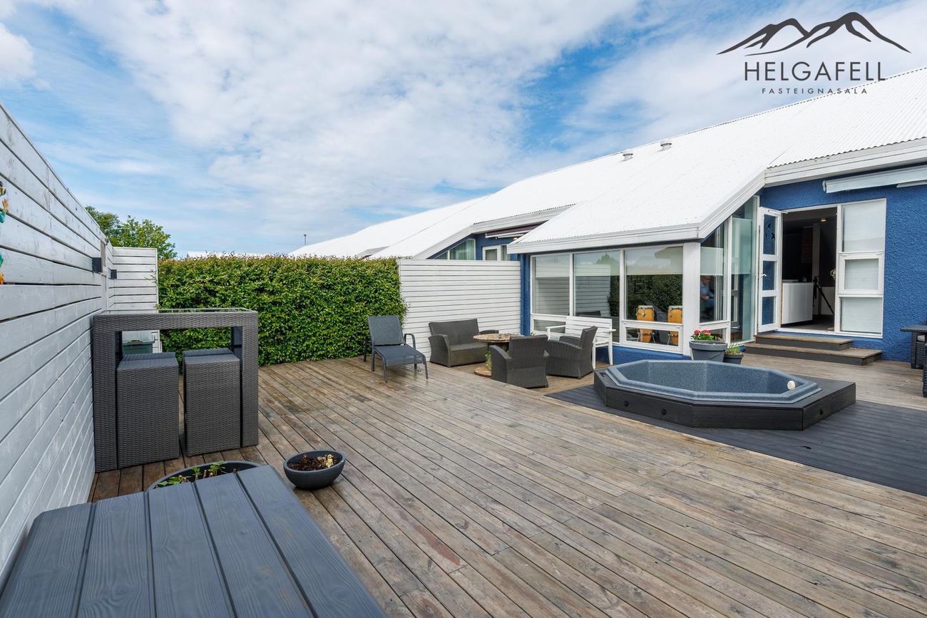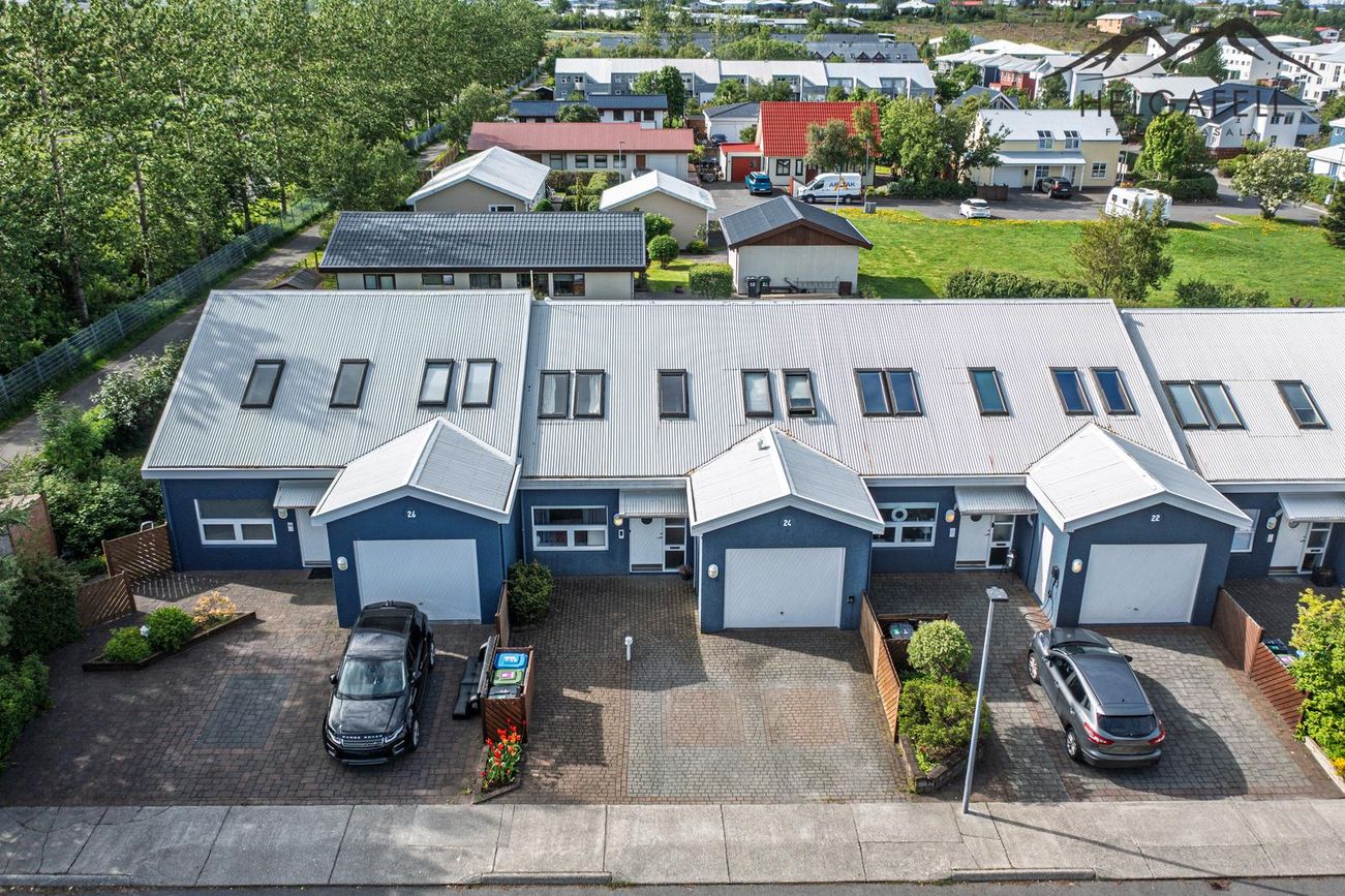 Merkt matseining hjá HMS er 06-0101.Mikil lofthæð er í stofu og í eldhúsrými. Í húsinu eru fjögur svefnherbergi, tvö á hvorri hæð, tvö baðherbergi, eldhús, þvottahús og geymsla, ásamt sambyggðum bílskúr/geymslu. Gott bílastæði er fyrir framan húsið. Fyrir aftan húsið er timburverönd til suðurs með skjólveggjum, heitum potti, útisturtu og rafmagns markissu.