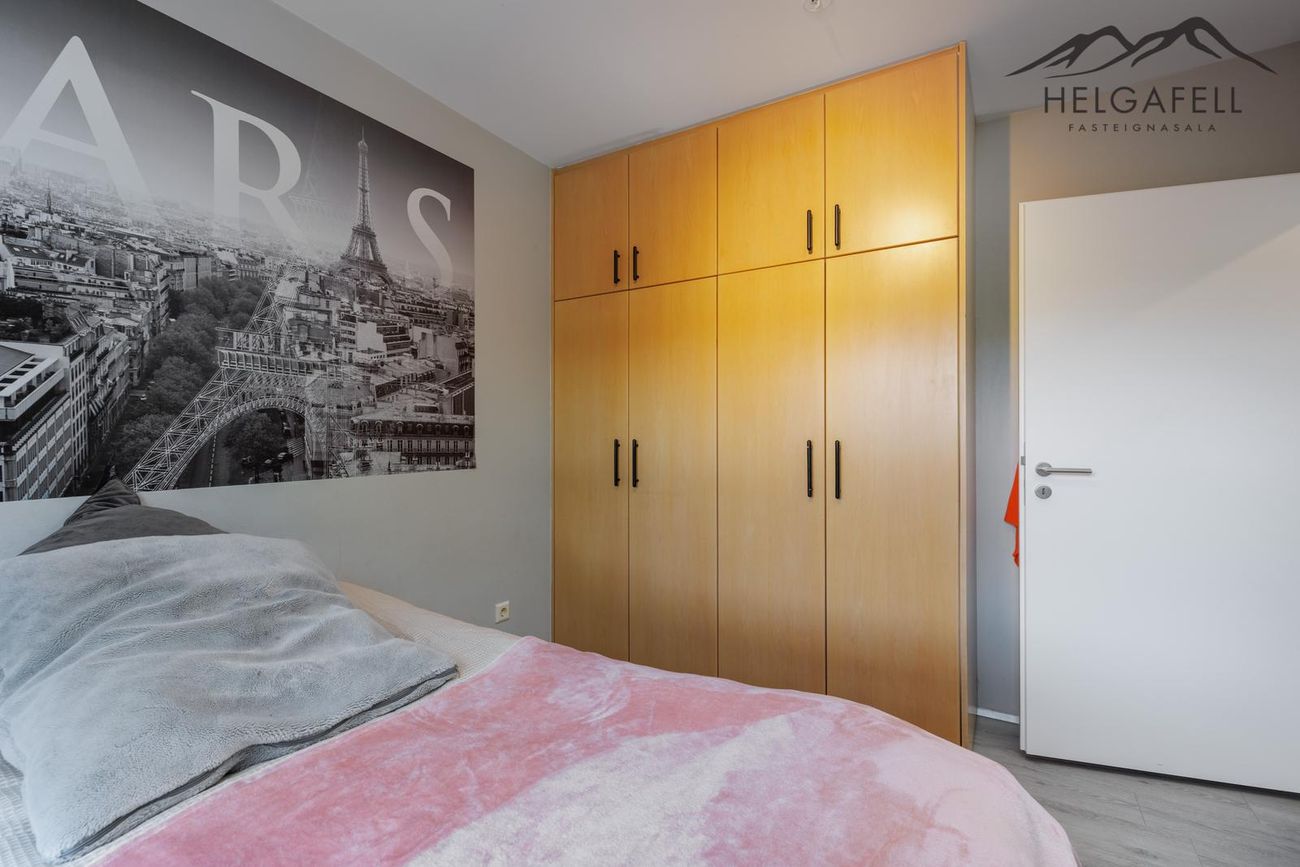Tvö parketlögð svefnherbergi með skápum eru á neðri hæðinni.