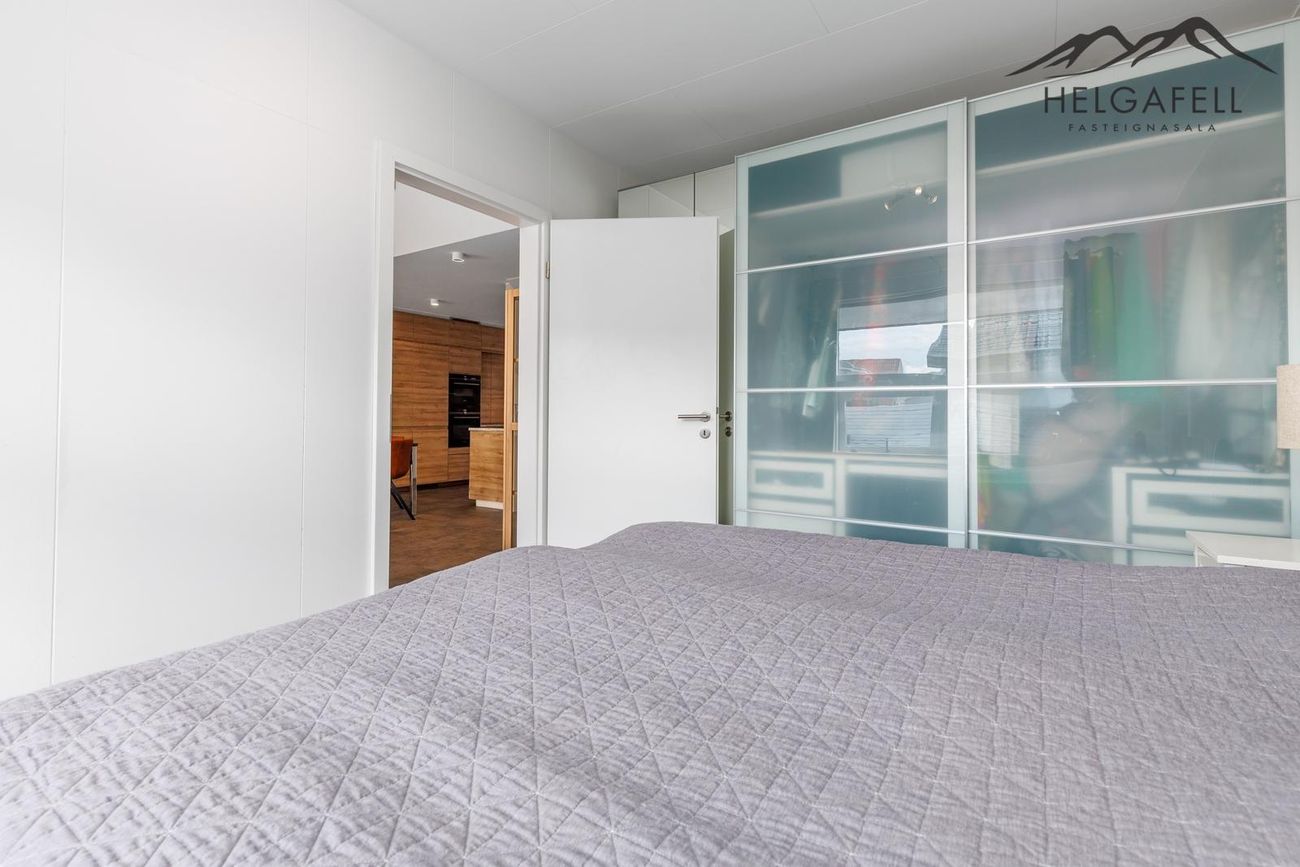 Merkt matseining hjá HMS er 06-0101.Mikil lofthæð er í stofu og í eldhúsrými. Í húsinu eru fjögur svefnherbergi, tvö á hvorri hæð, tvö baðherbergi, eldhús, þvottahús og geymsla, ásamt sambyggðum bílskúr/geymslu. Gott bílastæði er fyrir framan húsið. Fyrir aftan húsið er timburverönd til suðurs með skjólveggjum, heitum potti, útisturtu og rafmagns markissu.