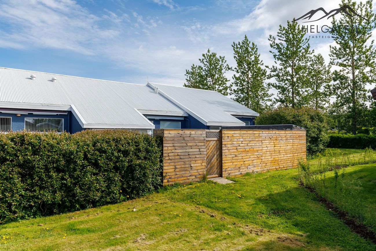 Sunnan við húsið er stór grasflöt, sameiginleg með húsum í Hvanna- og Grasarima. Nánari upplýsingar veita: