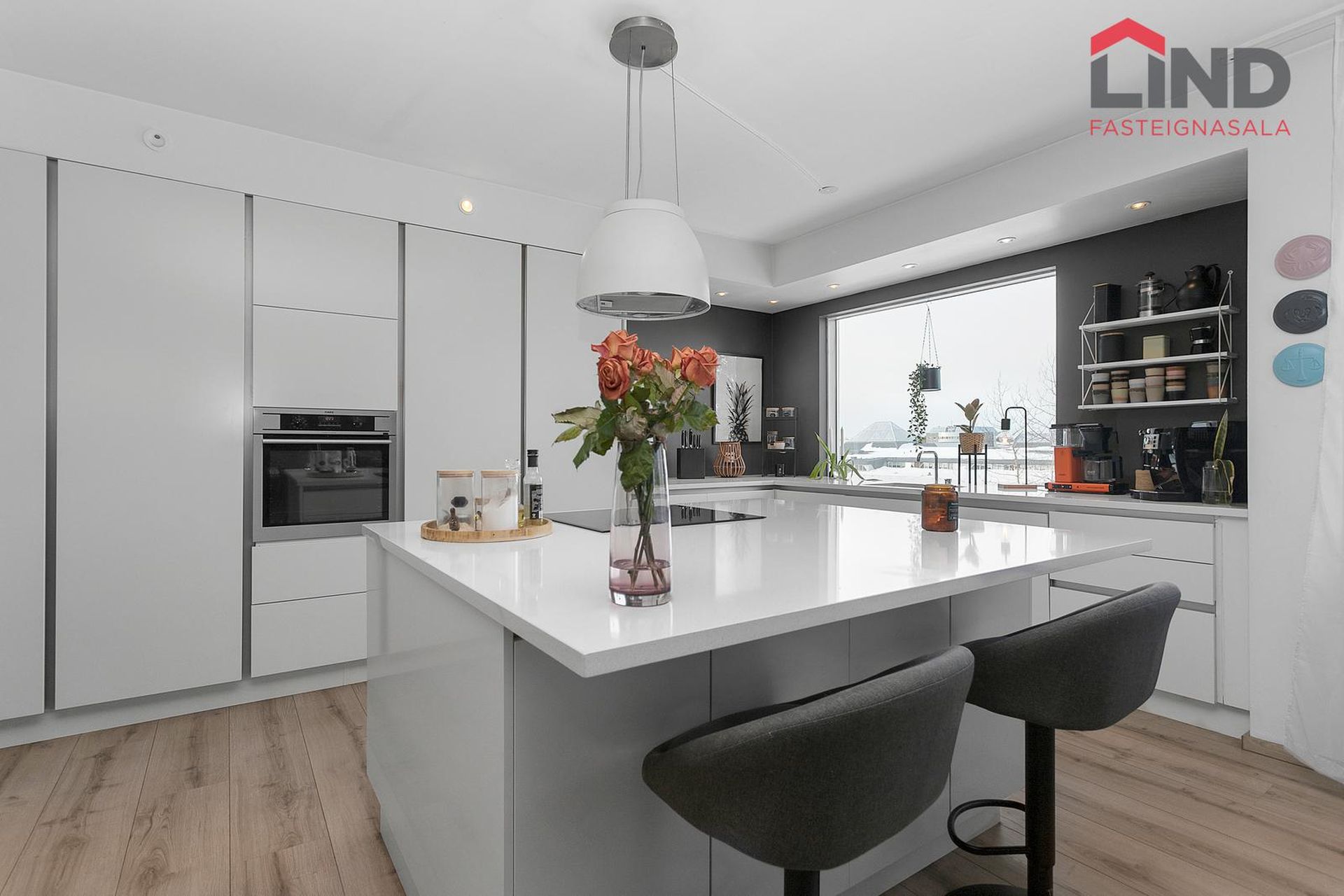 Hrafnkell á LIND kynnir glæsilega og nýlega uppgerða fimm herbergja íbúð með fallegu útsýni.Íbúðinni er á 4. (efstu) hæð ásamt íbúðarherbergi í kjallara og bílskúr í sérstæðri bílskúrslengju.Stórt og bjart alrými með opnu eldhúsi með góðri eldhúseyju. Þvottaaðsta innan íbúðar.Stutt í skóla, leikskól... Sýna meira