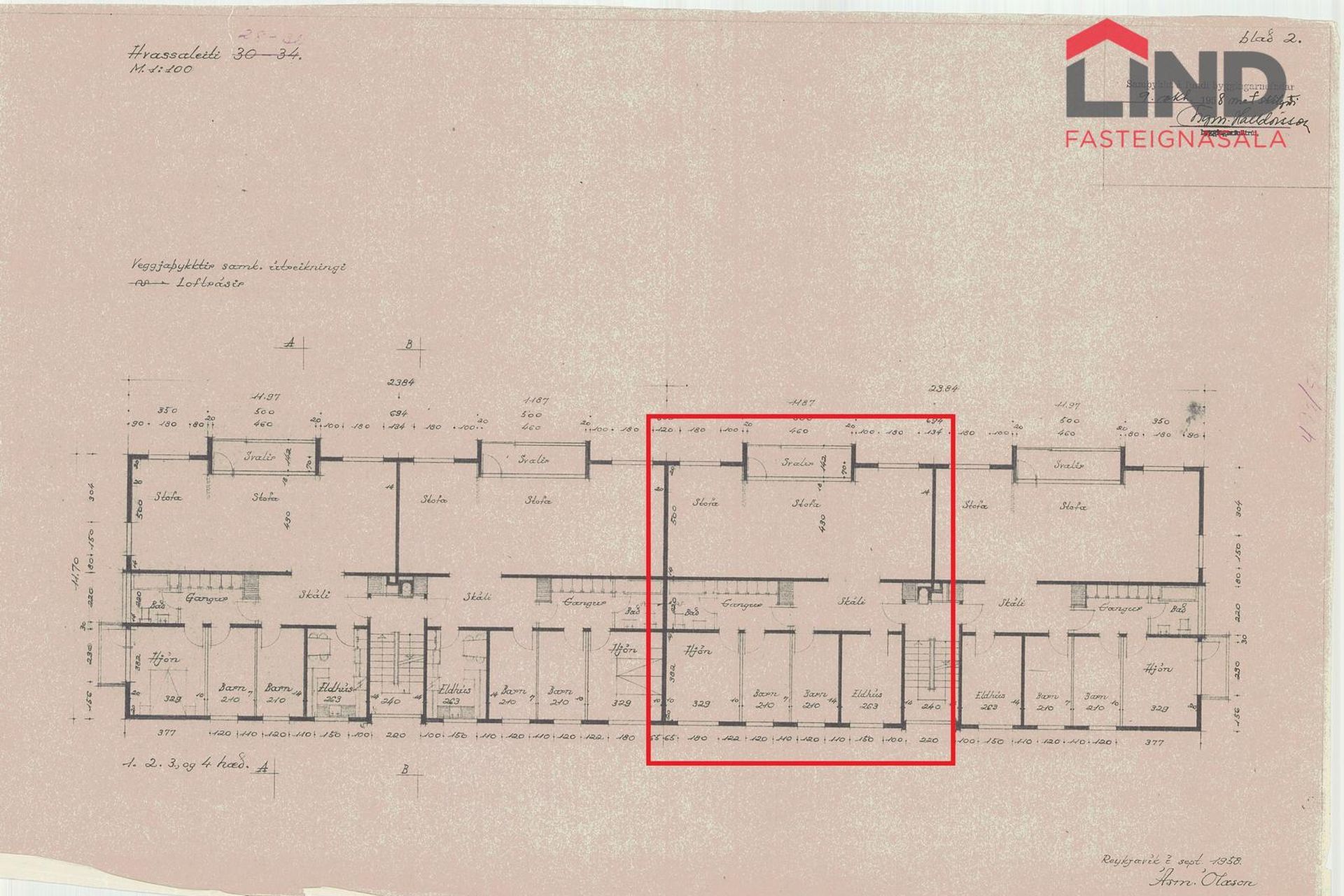 Hrafnkell á LIND kynnir glæsilega og nýlega uppgerða fimm herbergja íbúð með fallegu útsýni.Íbúðinni er á 4. (efstu) hæð ásamt íbúðarherbergi í kjallara og bílskúr í sérstæðri bílskúrslengju.Stórt og bjart alrými með opnu eldhúsi með góðri eldhúseyju. Þvottaaðsta innan íbúðar.Stutt í skóla, leikskóla og alla helstu þjónustu.Nánari upplýsingar veitir Hrafnkell P. H. Pálmason Löggiltur fasteignasali, í síma 690 8236, tölvupóstur .Eignin skiptist í: anddyri, stofu og eldhús í opnu rými, 4 svefnherbergi innan íbúðar, baðherbergi, íbúðarherbergi í kjallara, geymslu og bílskúr.Íbúðarrýmið er skráð 128 fm hjá Þjóðskrá Íslands, íbúðarherbergið 13,6 fm, geymslan 7,4 fm og bílskúrinn 20,7 fm, samtals 169,7 fm.Íbúðin er laus til afhendingar fljótlega.*Meðfylgjandi grunnteikning endurspeglar núverandi skipulag ekki að fullu. Eldhúsið hefur verið fært.Nánari lýsing: Sameignin er mjög snyrtileg og öll til fyrirmyndar.Komið er inn í parketlagt anddyri með fataskápum. Stofan og borðstofan eru samliggjandi og mynda mjög opið og bjart rými og útgengt á góðar vestursvalir með fallegu útsýni. Opið eldhús er með fallegri L-laga innréttingu með góðu skápaplássi og miklu vinnrými. Skápar að hluta upp í loft, ofn í góðri vinnuhæð, steinn á borðum, innfelldur ísskápur og frystir ásamt innfelldri uppþvottavél. Vola blöndunartæki. Eldhúseyja með góðu skápa- og skúffuplassi, helluborð ásamt fallegum gufugleypi. Parket á gólfi.Fjögur svefnherbergi eru innan íbúðar og er öll parketlögð og hjónaherbergið er með fataskáp. Gluggar til austurs.Baðherbergið er flísalagt í hólf og gólf með innréttingu og góðri Walk-In sturtu. Gólfhiti á baðherbergi og innfelld blöndunartæki.. Stór skápur á ganginum og í hluta af honum er stæði og tengi fyrir þvottavél og þurrkara. Íbúðarherbergi í kjallara, sem getur nýst sem íbúðarherbergi eða vinnuaðstaða. Herbergið er með lausum teppaflísum, 13,6fm., með aðgengi að sameiginlegu baðherbergiGeymslan er með flísalögðu gólfi. 7,4fm.Bílskúrinn er með flísalögðu gólfi, rafmagni, heitu og köldu vatni. 20,8fm. Hverjum bílskúr fylgir sérafnotaréttur af stæði við bílskúrshurð.HTH innréttingar í eldhúsi og á baði með stein frá S. Helgason. Vola innfeld blöndunartæki á báðum stöðum.Öll tæki í eldhúsi, ofn, helluborð, frystiskápur, ísskápur, uppþvottavél og háfur upphengdur eins og ljós, allt frá Ormson.Fljótandi parket er á öllu nema baðherbergi sem er flísalagt. Gólfhiti inni á baðherbergi.Sameiginlegt þvottahús í kjallara, hver íbúð með sín eigin tæki. Sameiginleg hjóla- og vagnageymsla.Sameiginleg snyrting í kjallara.Við Hvassaleiti 30 eru 8 íbúðir og allar 5herb. í svipaðri stærð.Heildarhúsið Hvassaleiti 28 - 30 eru 16 íbúðir í heild og allar íbúðir 5herb. í kringum 170fm. Heildarhúsið hefur fengið gott viðhald í gegnum árin.Hvassaleiti 30, 103 Reykjavík, nánar tiltekið eign merkt 04-01, fastanúmer 203-1579 ásamt öllu því sem eigninni fylgir, þar með talið tilheyrandi lóðar og sameignarréttindi.Eignin Hvassaleiti 30 er skráð sem hér segir hjá FMR: Eign 203-1579, birt stærð 169.8 fm.Nánari upplýsingar veitir Hrafnkell P. H. Pálmason Löggiltur fasteignasali, í síma 690 8236, tölvupóstur .-----------------------------------------------------------------------Gjöld sem kaupandi þarf að standa straum af vegna kaupanna: 1. Stimpilgjald af kaupsamningi - 0.8% af heildarfasteignamati / 1.6% fyrir lögaðila Fyrstu kaup - 0,4% af heildarfasteignamati2. Þinglýsingagjald af kaupsamningi, veðskuldabréfi, veðleyfi o.fl.- kr. 2.700 af hverju skjali.3. Lántökugjald lánastofnunar4. Umsýsluþóknun til fasteignasölu, sbr.kauptilboð.