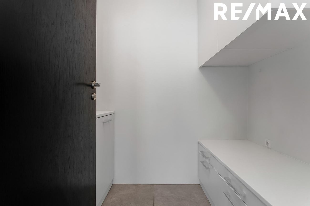 Þvottarými er með góðri innréttingu, vaski og stæði fyrir þvottavél og þurrkara í vinnuhæð.