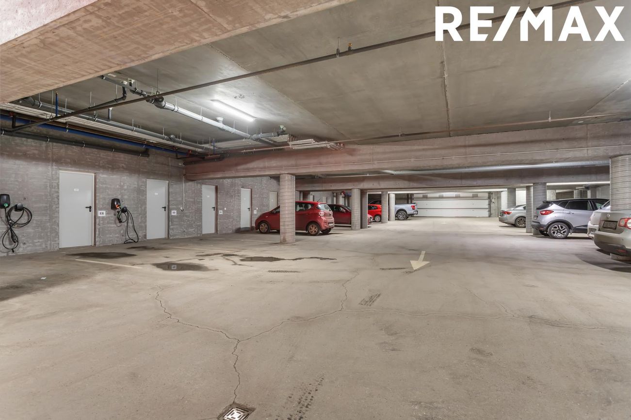 Stæði í lokaðri bílageymslu fylgir, búið er að setja upp hleðslustöð.