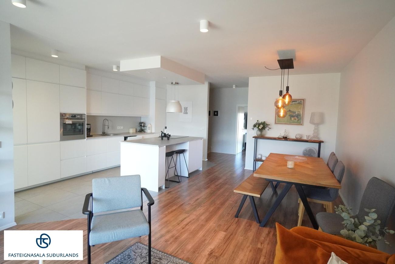 * Stofa og eldhús eru í opnu rými.* 3 stór svefnherbergi. Góðir fataskápar í tveimur af þremum herbergjum og harðparket á gólf.