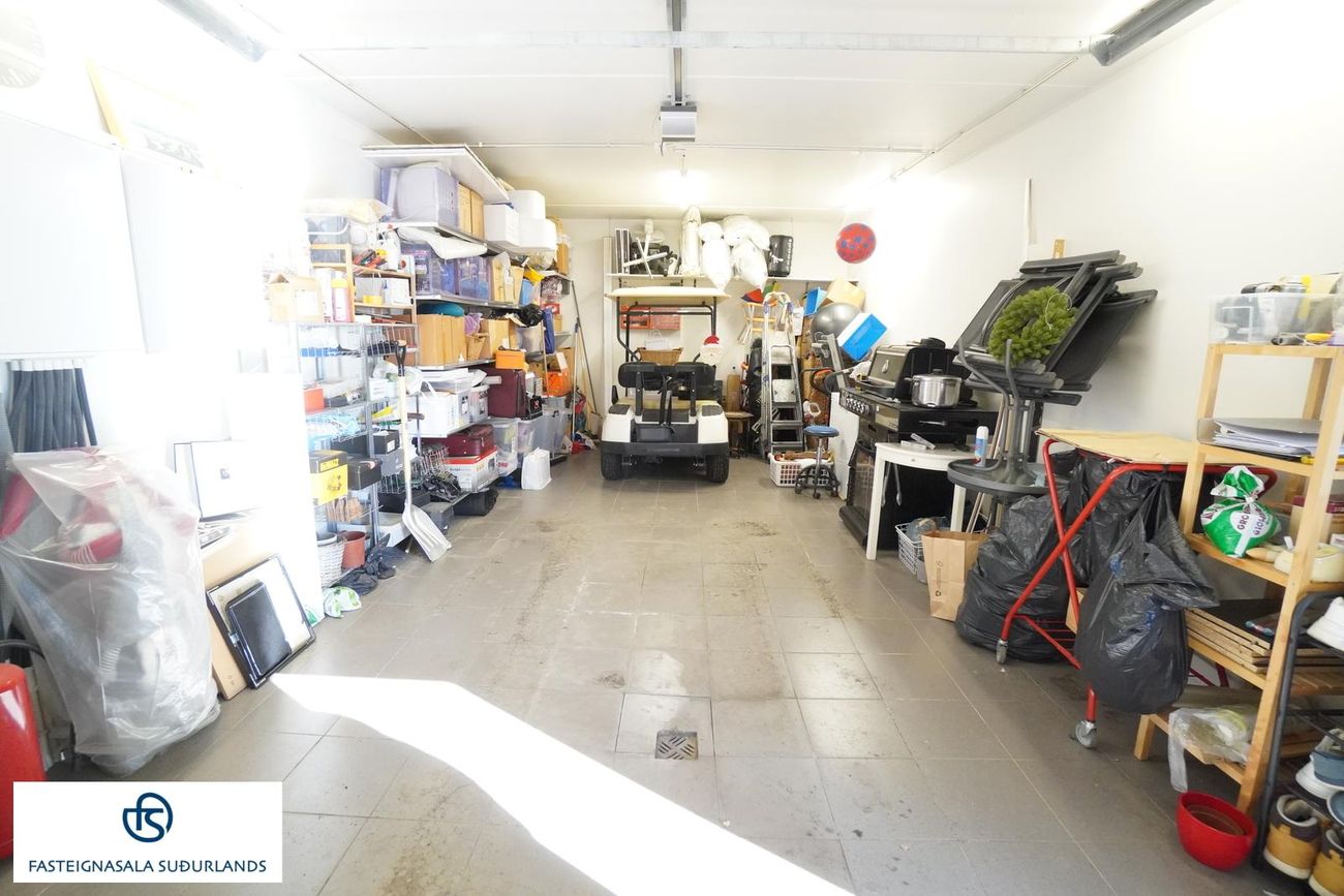 * Góður bílskúr með flísum á gólfi.
