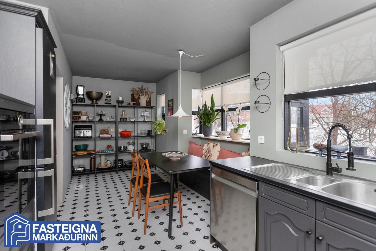 Eignin hefur verið mikið endurnýjað að undanförnu og var húsið var málað síðastliðið sumar og sett nýtt handrið á svalir hússins. Kaldavatnslagnir frá baðherbergi efri hæðar voru endurnýjaðar nýlega og nýtt parket var lagt á aðalhæðina ásamt því að endurbæta íbúð í bílskúr. Eignin skiptist þannig: á aðalhæð eru forstofa, svefnherbergi, hol, eldhús, borðstofa, stofa og gestasnyrting. Á efri hæð hússins eru sjónvarpskrókur, baðherbergi, hjónaherbergi og tvö barnaherbergi. Á jarðhæð suðvestan megin er bílskúr sem búið er að gera íbúð með sérinngangi og einnig er rúmgóð stúdíóíbúð með sérinngangi á jarðhæð. Möguleiki er á góðum leigutekjum.